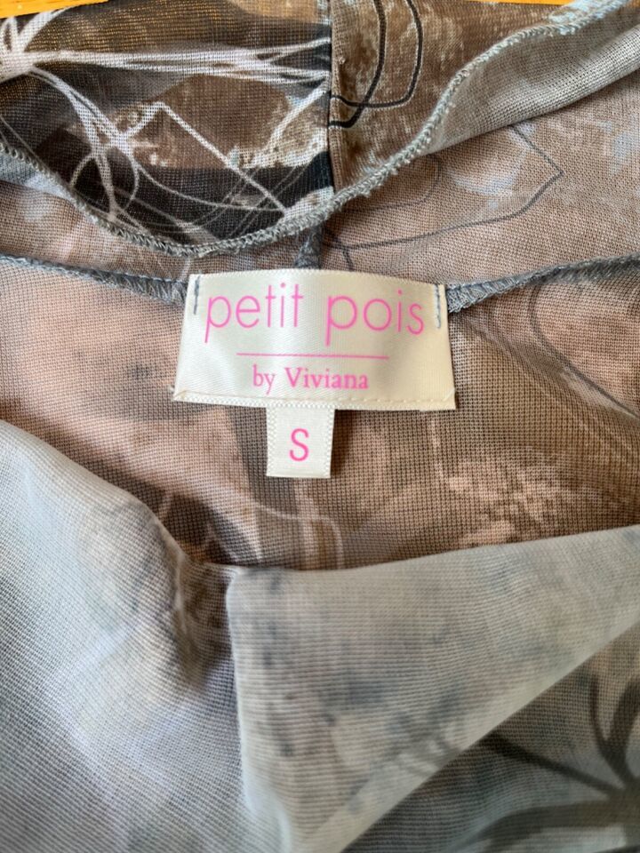 Petit Pois Draped cowl neck Doble mesh sheer art long sleeve blouse top, Size S