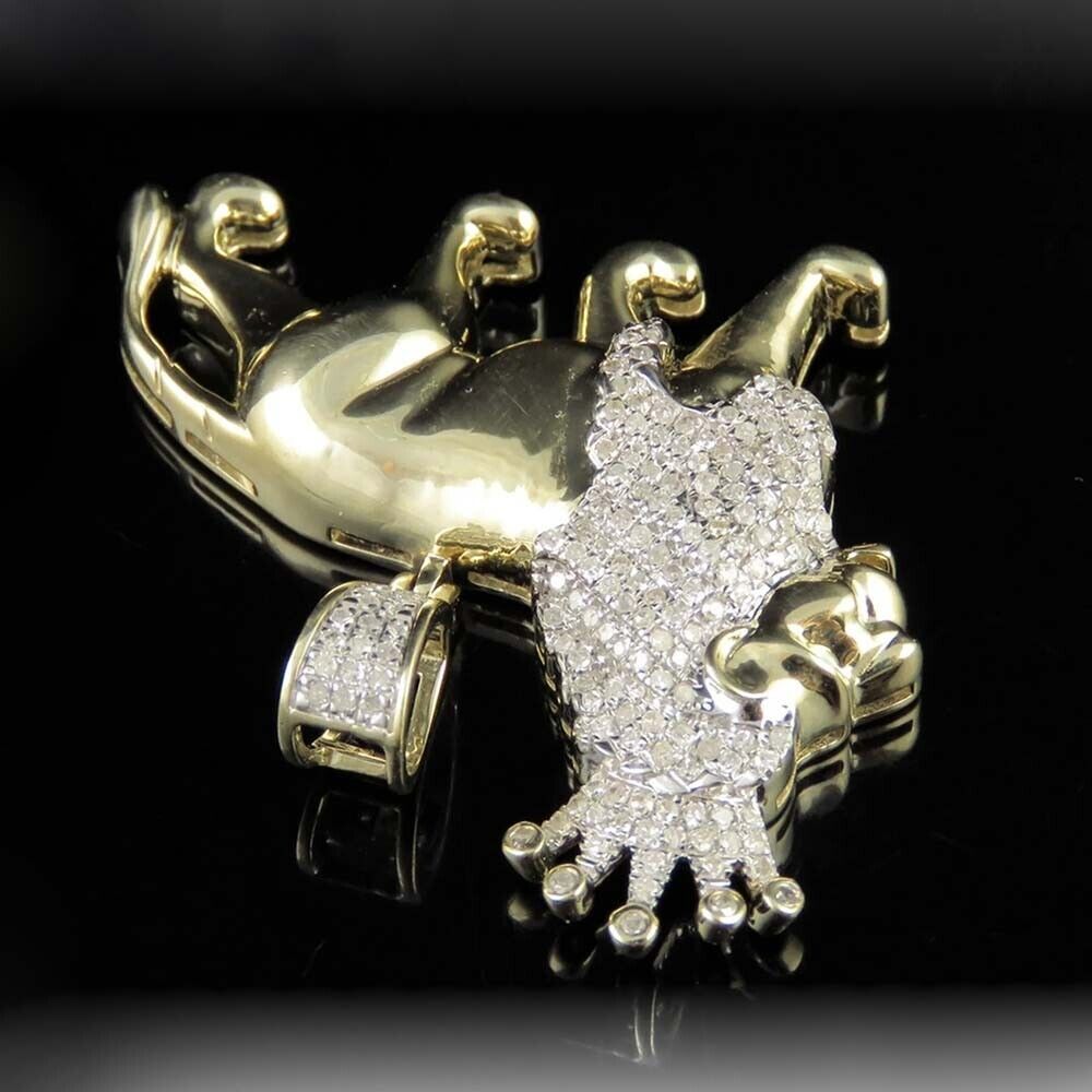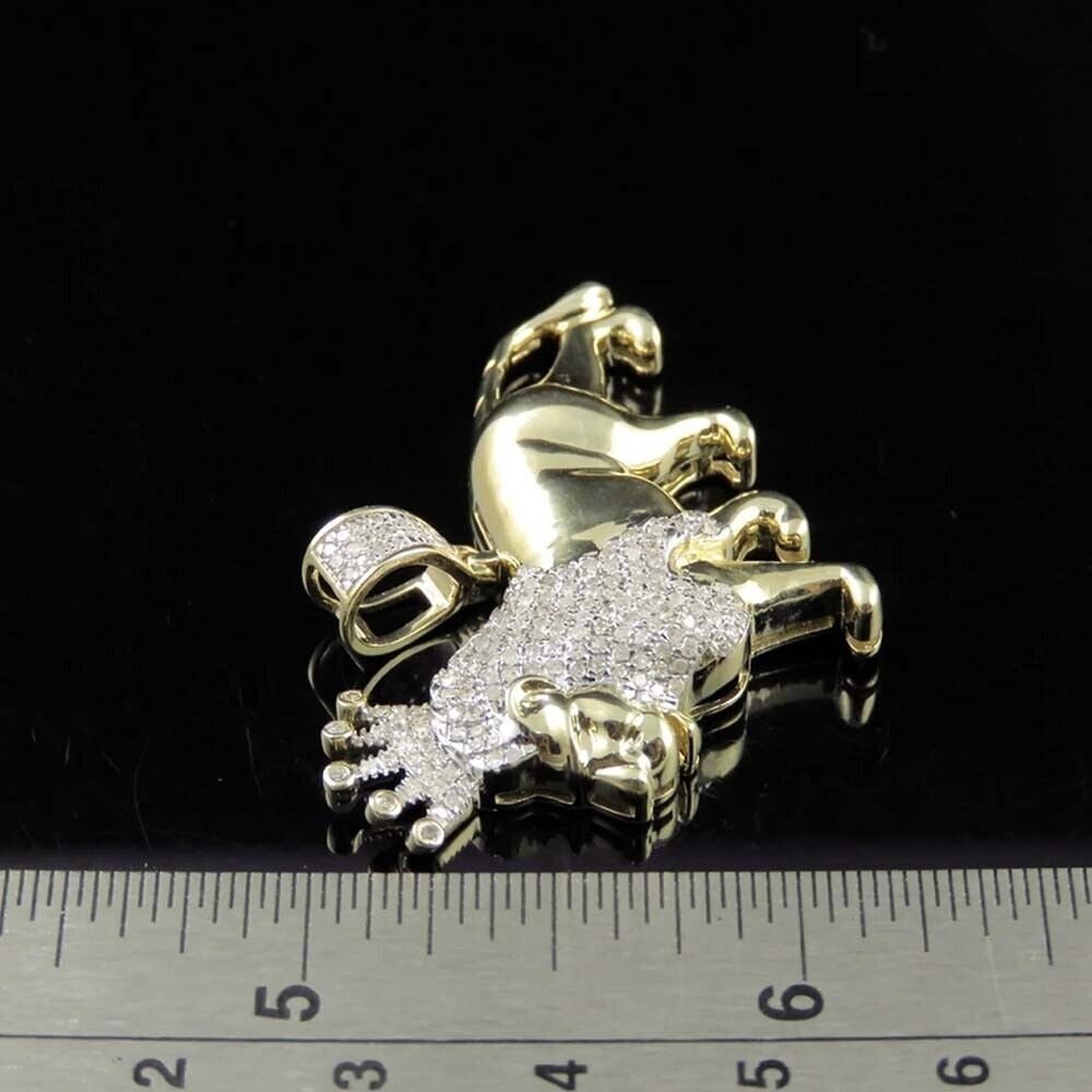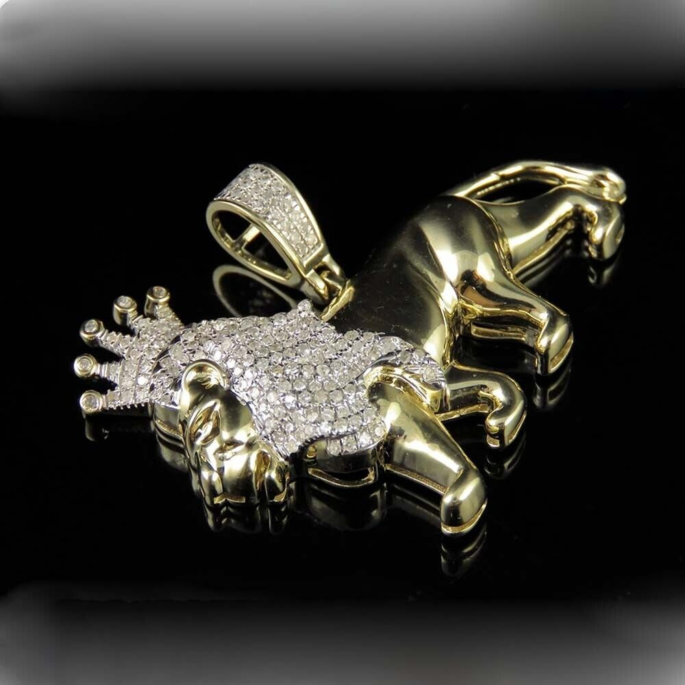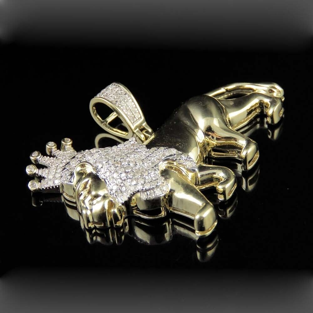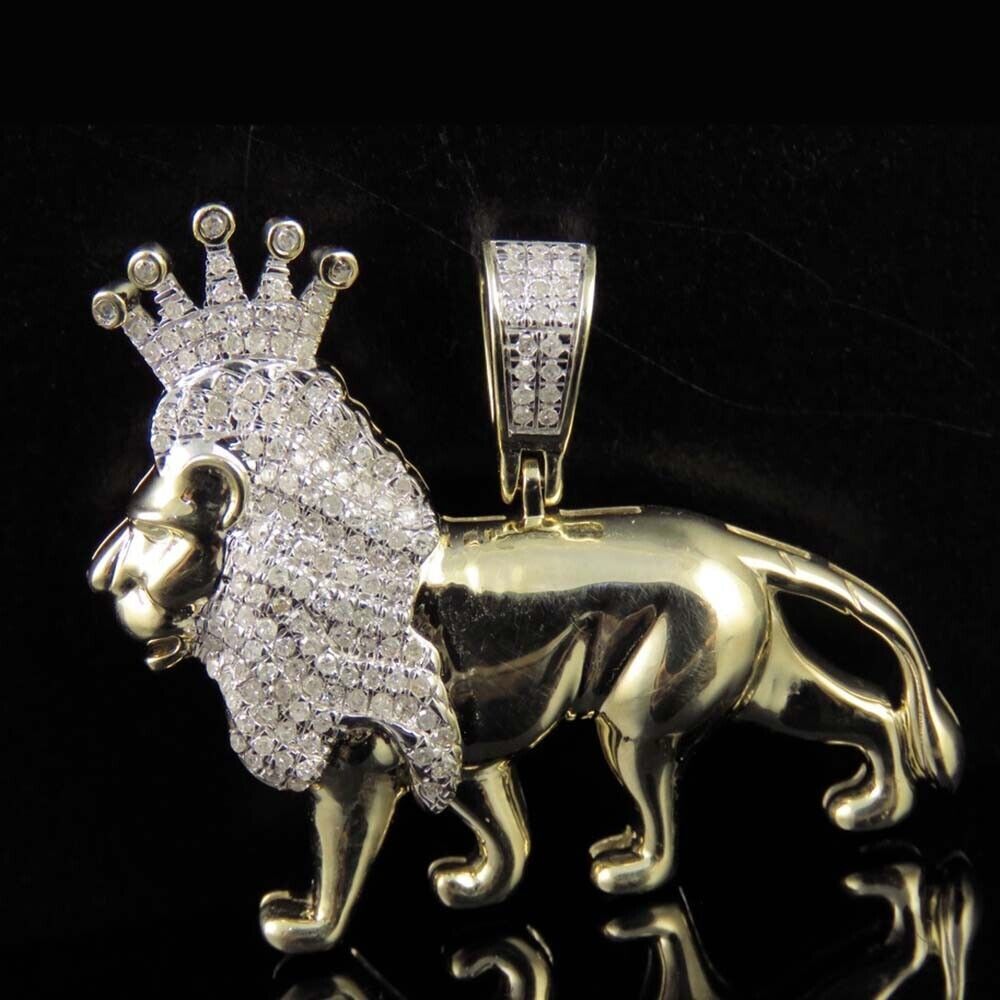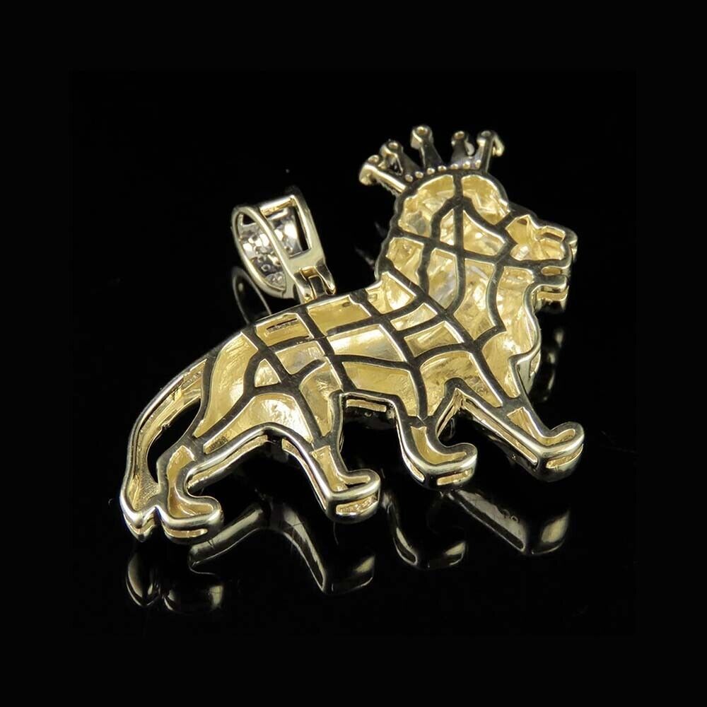 0.60 Ctw Brilliant Moissanite 14K Yellow Gold Plated Lion Men's Pendant 1.25"