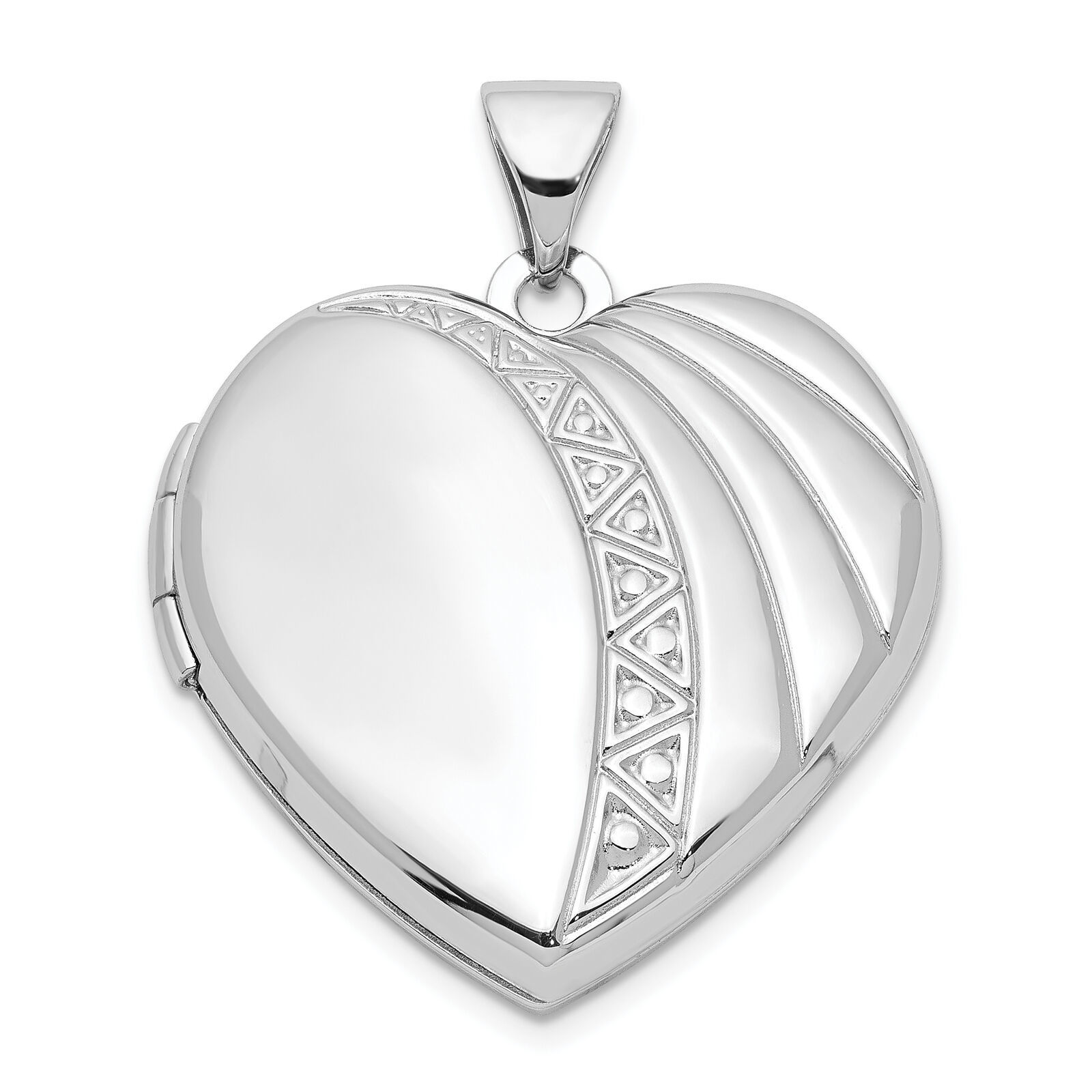 Sterling Silver Rhodium-plated 21mm Textured Heart Locket QLS614