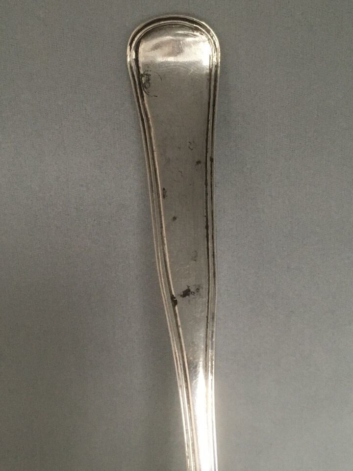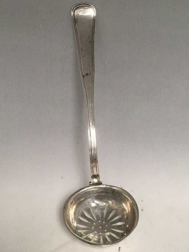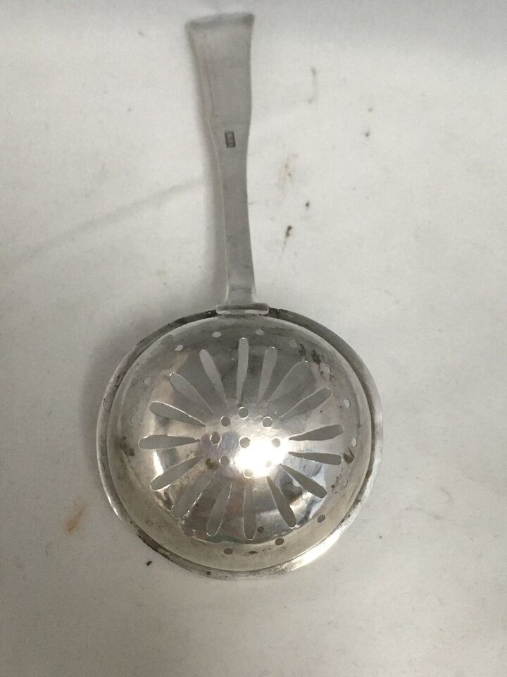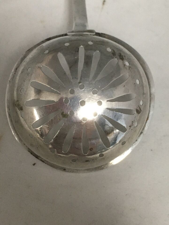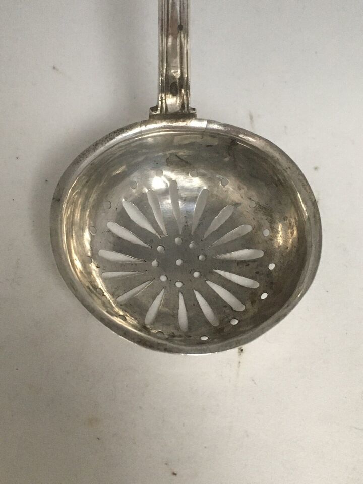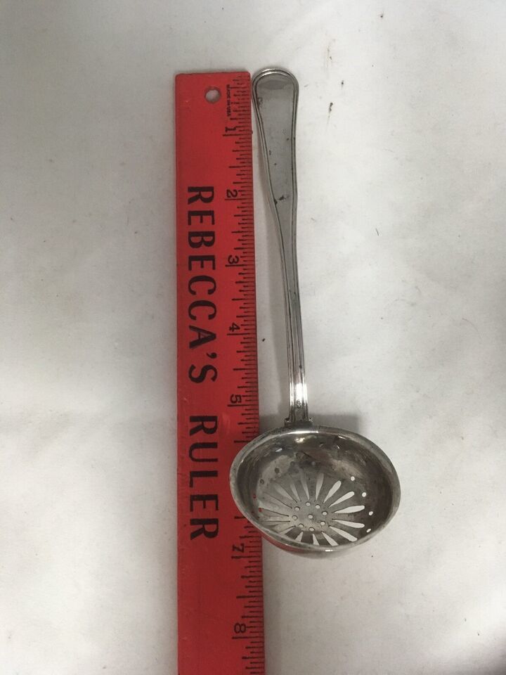 We confirmed through a silver collectors group that this is in fact a Wendelboe coin sprinkle spoon and consensus seemed to be it was identical to the sprinkle spoon found on a website Antikkram. In fact, the sprinkle spoon was listed as one of the signature items shown. The sprinkle spoon weighs 30 grams and is 7 inches long. Plus we just like saying silver sprinkle spoon!
