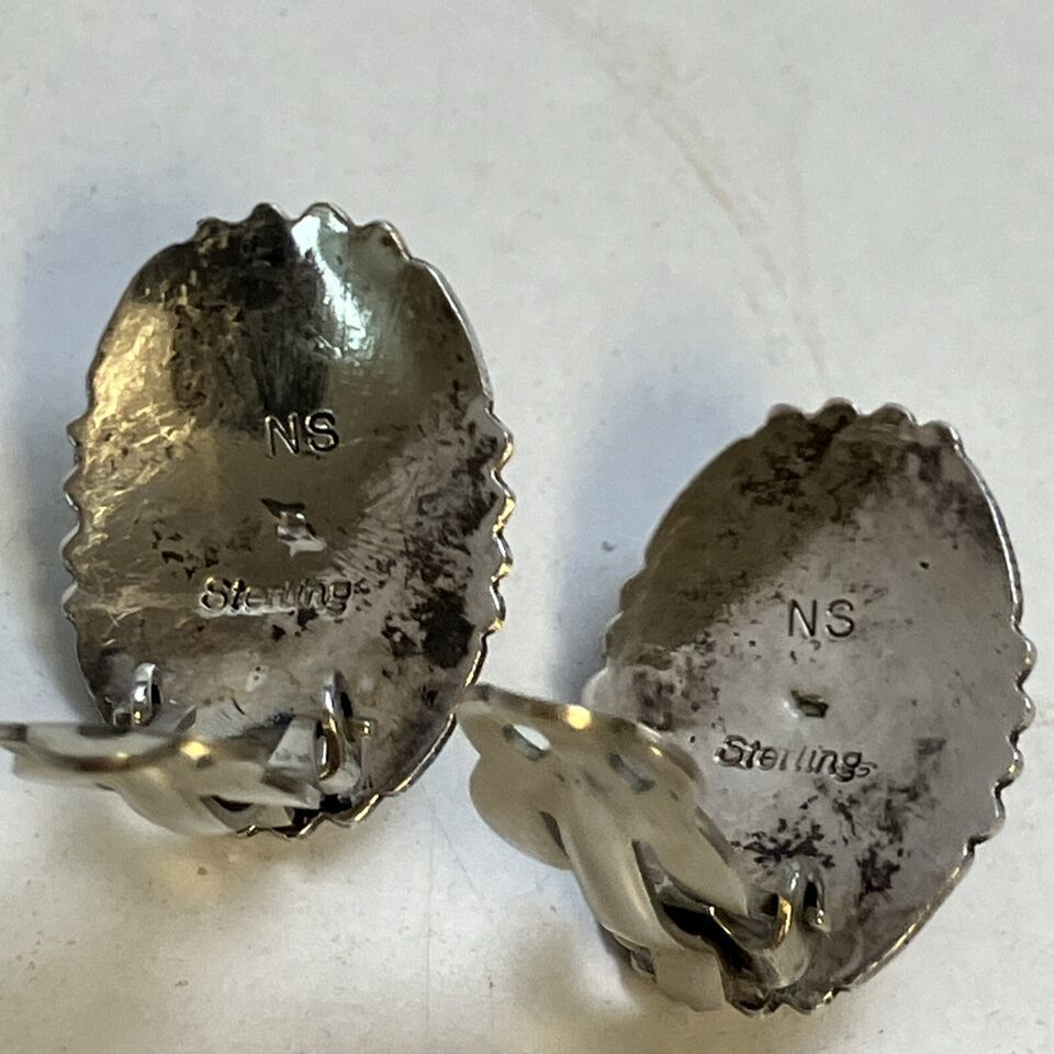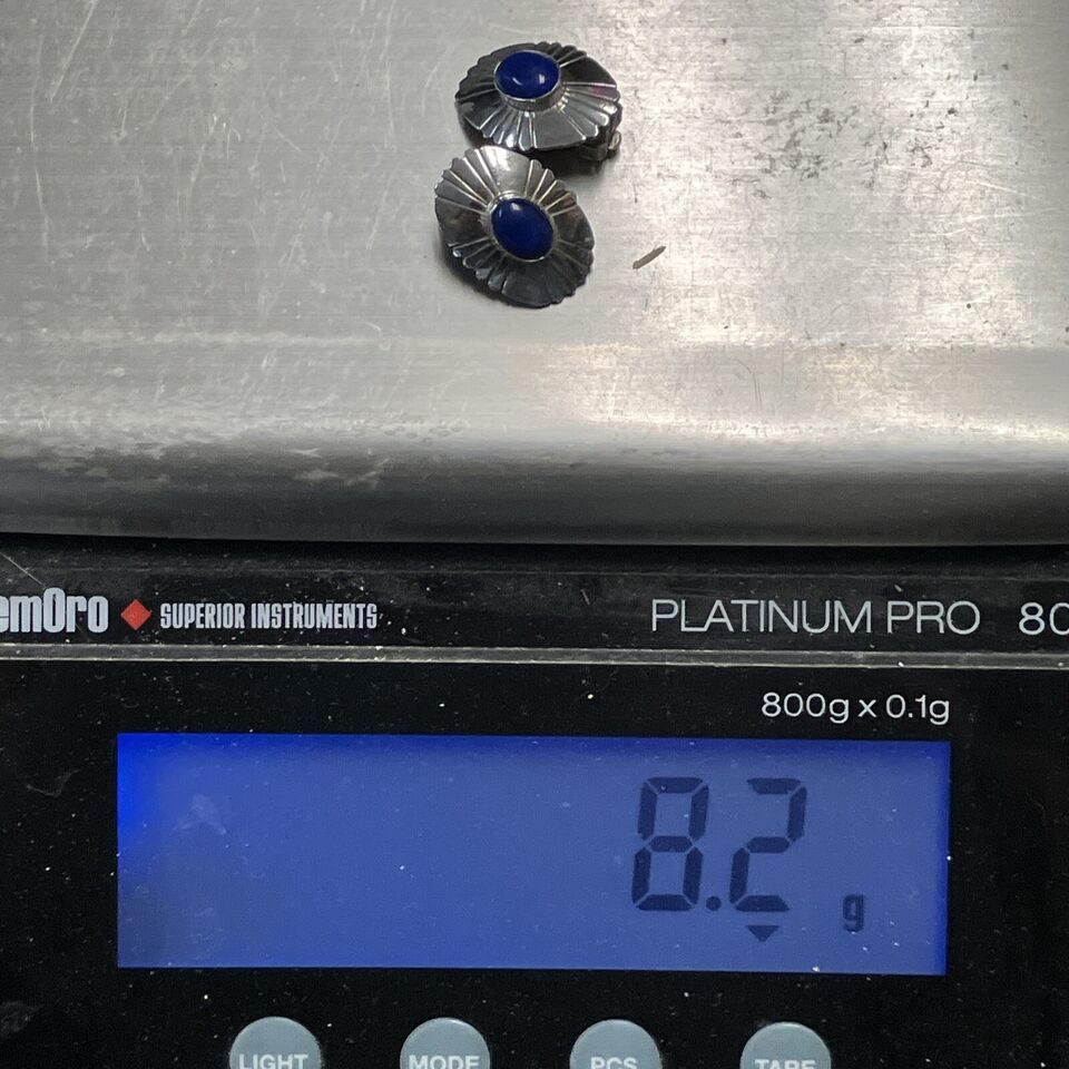 Native American Sterling Silver Lapis Lazuli Clip On Earrings Signed NS Or SN