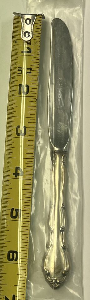 Brand new 1952-1996 pattern Towle Butter Knife. Measured 6.5 inches long. Wrapped in plastic and new from store. Sterling handle and stainless steel blade.