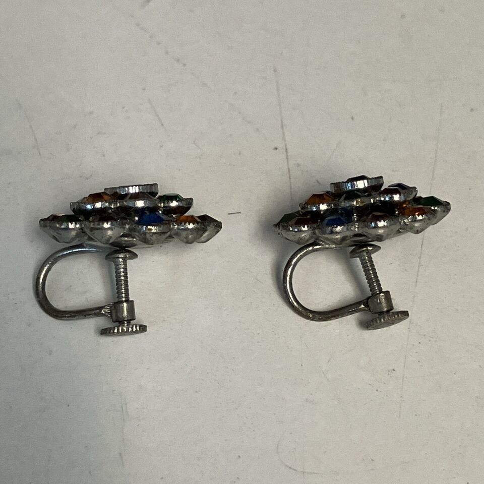 Signed Czechoslovakia Multi Color Glass Screw Back Earrings