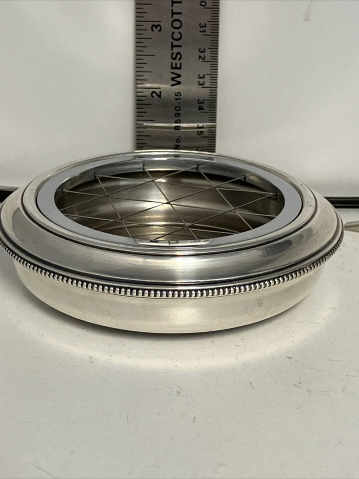 This beautifully crafted item does not appear to have been used at all let alone as an ashtray and is in wonderful shape. It?s approximately 4.5 inches wide and 1 inch in height and weighs 106 grams. No monograms or other personalizations.