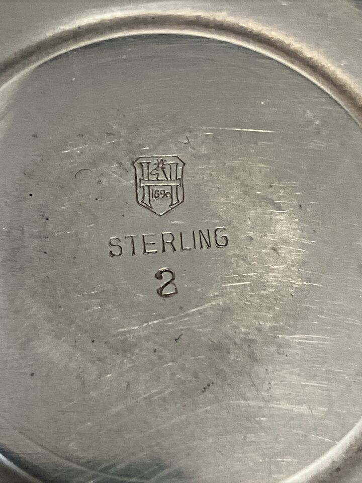 We found only one comparable: A Tiffany Co cigar ashtray (also listed as a ?rose bowl?). To be honest we are not sure exactly what it?s for but I?m sure it can be repurposed for a multitude of things today. Bearing the hallmark of renowned maker John Hasselbring who worked from 1890-1955 and was subsequently bought out by Crown Silver. He was known for small holloware and table accessories.