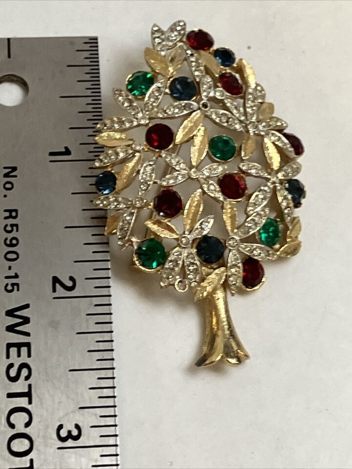 Vintage CHRISTMAS TREE BROOCH Sphinx of England A1266 Book Piece RHINESTONES