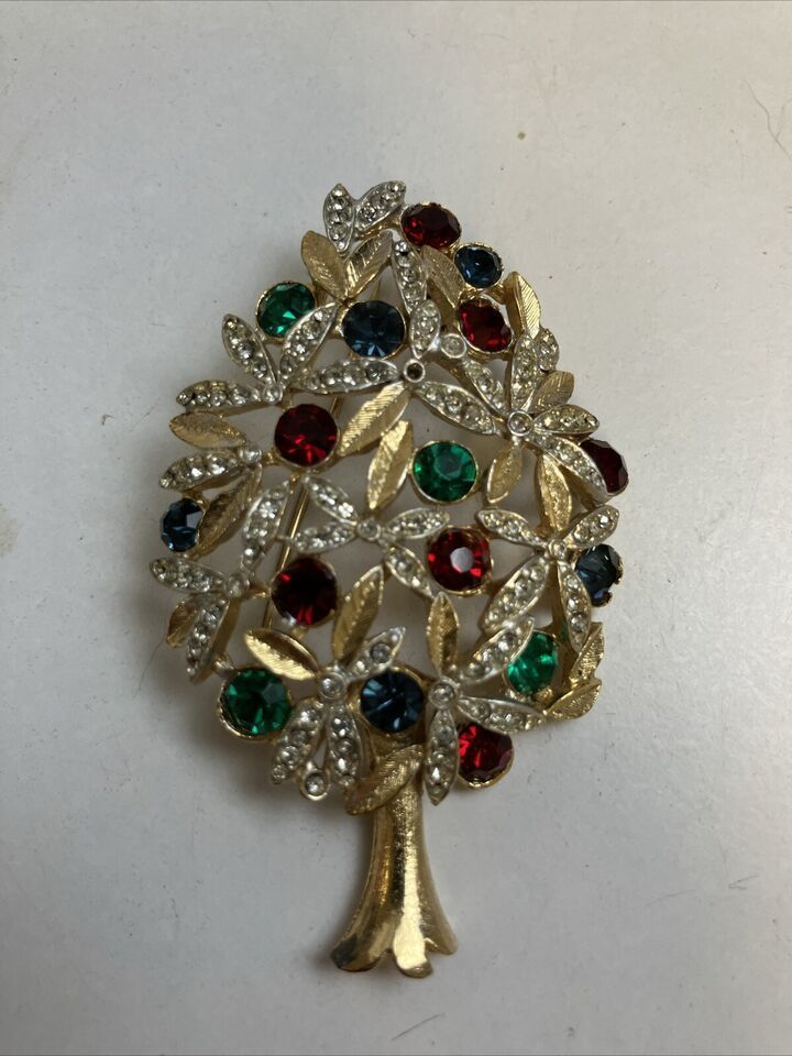 Vintage Sphinx of England A1266 Crystal Rhinestone Christmas Tree Pin Brooch.