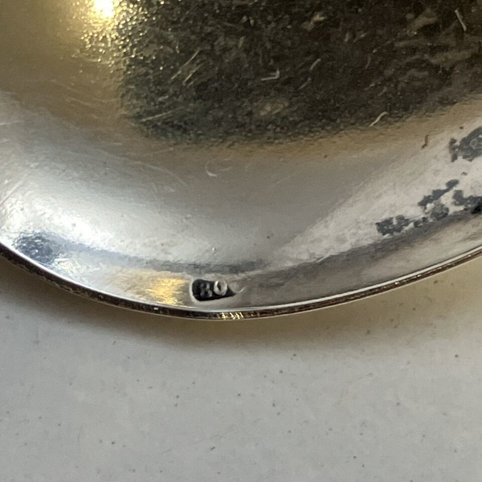 Add a unique and historically significant piece to your collection with this vintage twisted spoon featuring the iconic SPQR ROMA design. Crafted from .800 silver, this collectible spoon weighs 13g and measures 5 inches in length. A must-have for antique and silver collectors alike, this piece is sure to make a statement in any display.