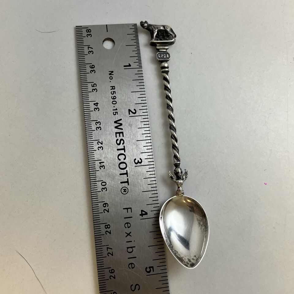 .800 Silver Vintage Collectible Twisted Spoon SPQR ROMA 5” Long 13g