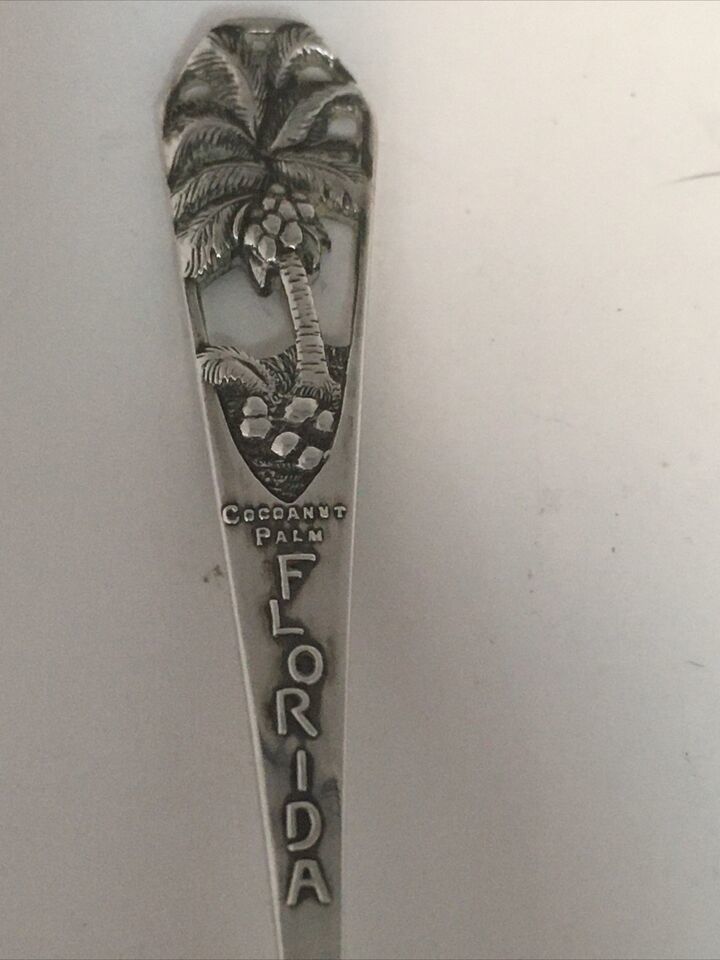 Sterling Silver Souvenir Spoon Cocoanut Palm Florida 4.125 Inches Long