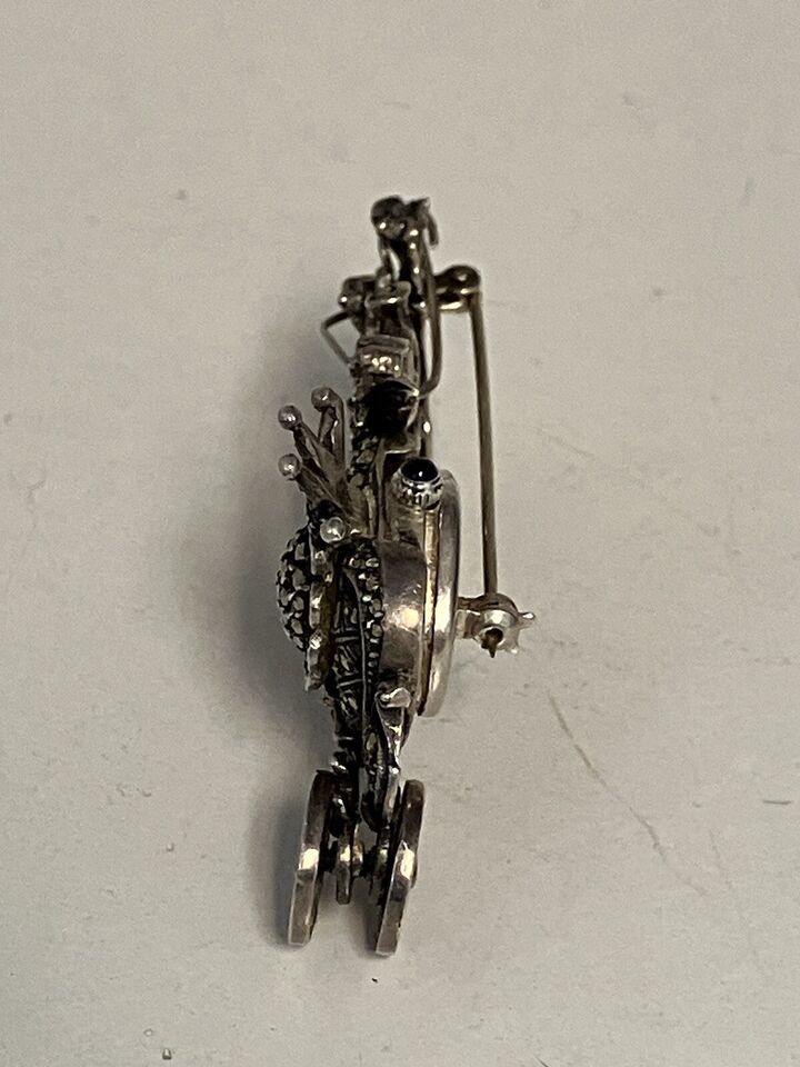 This is incredible! What first looked like a nice Marcasite and sterling silver brooch became so much more once we got a closer look.