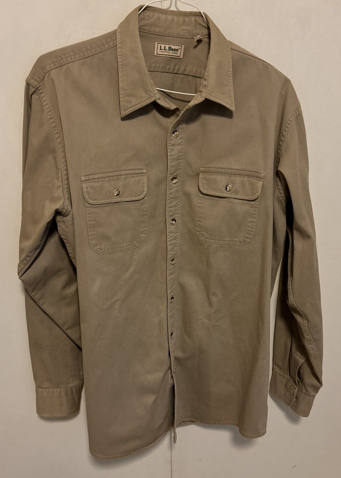 LL Bean Shirt Mens XL Beige Button Up Shirt Vintage USA Made