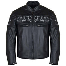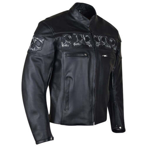 The Reflective Skull Leather Motorcycle Jacket is a must-have for the riders who love the combination of sporty and cruiser. This jacket has a distinct reflective skull design on the front and back which will definitely make you stand out in the crowd; especially at night.