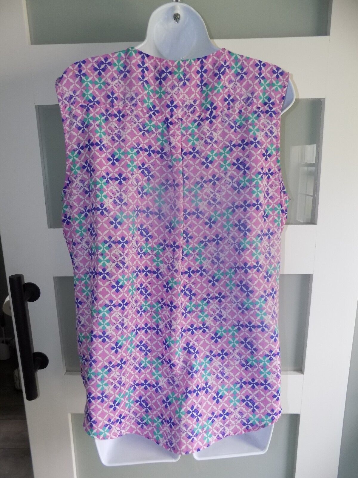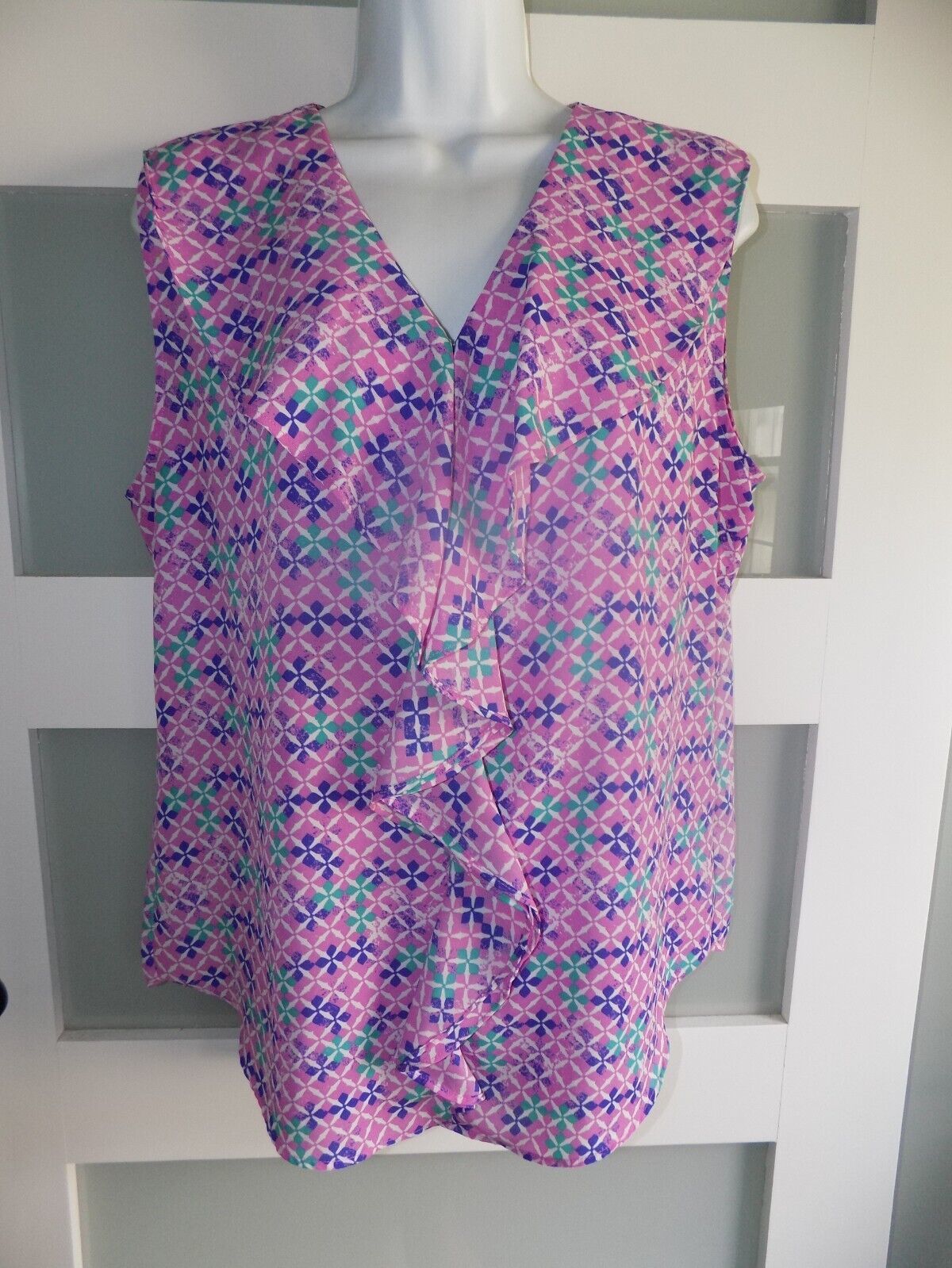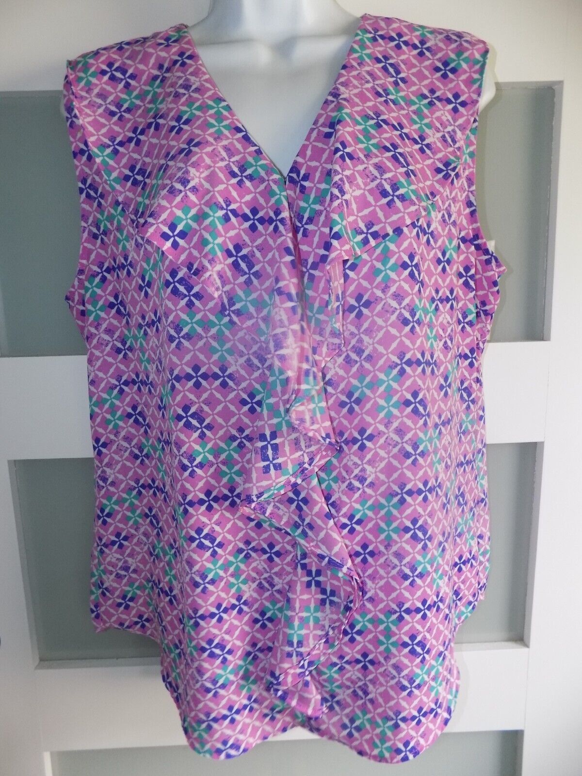 Simply Styled by Sears Multi-Colored Geometric Ruffled Tank Top Size L Women's