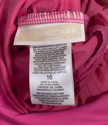 Michael Kors Iconic Solids One Shoulder One-Piece Swimsuit Cerise Size 16