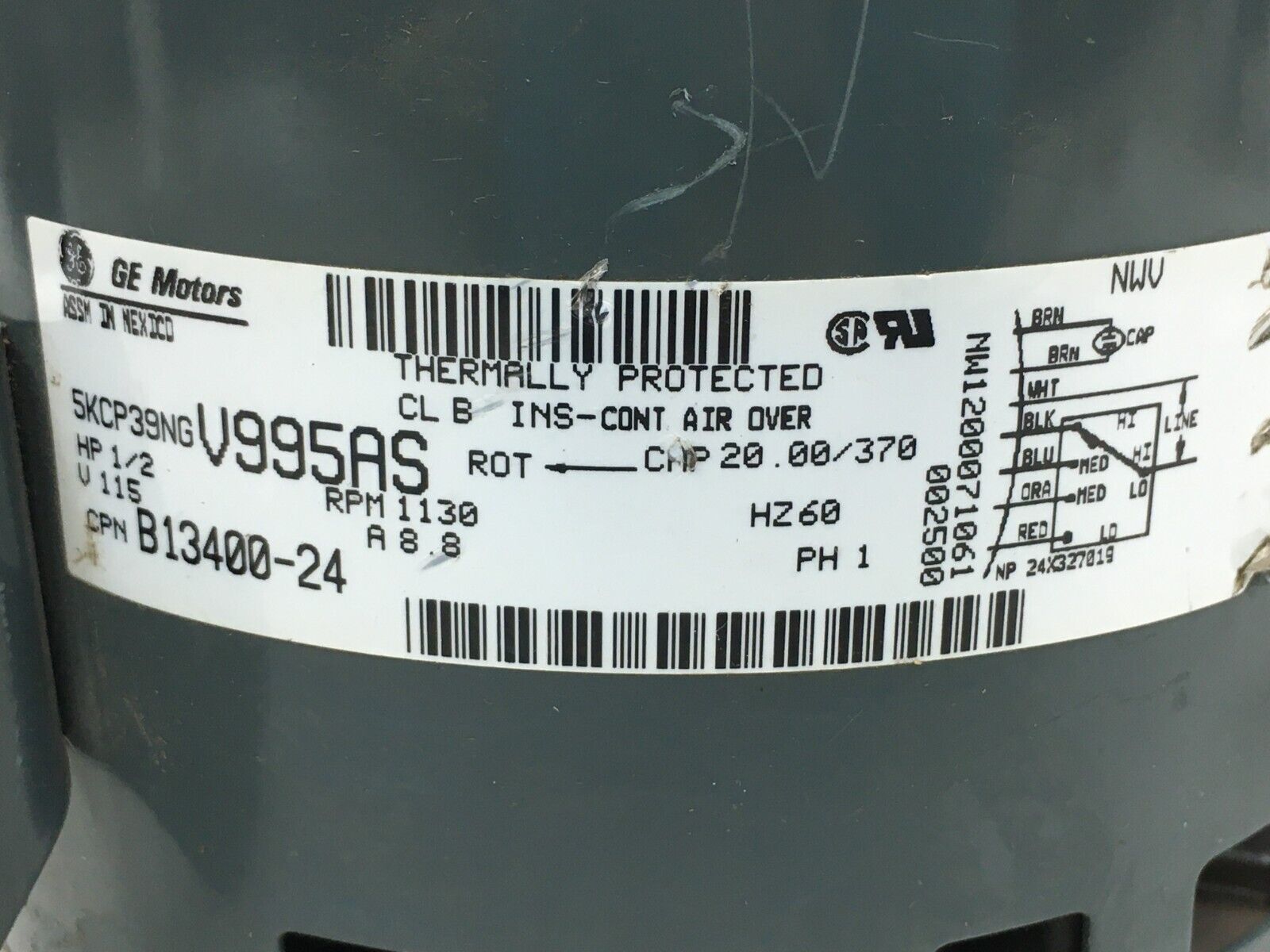 GE 5KCP39NGV995AS Blower Motor 1/2 HP 1130 RPM 1PH 115V 60Hz B1340024 MB168B