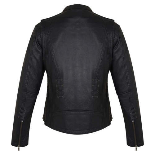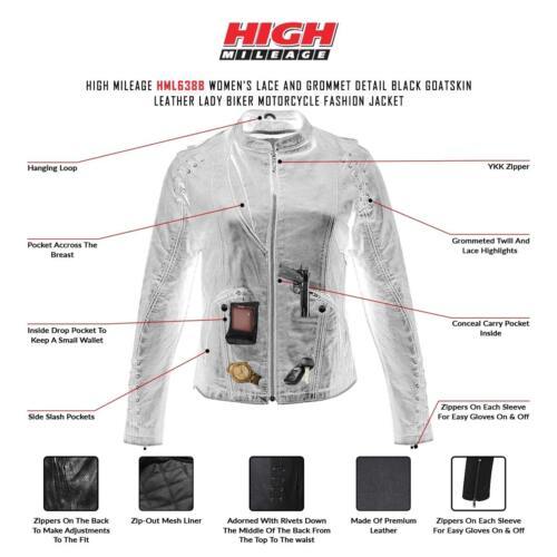 High Mileage Ladies Lightweight Black Goatskin Jacket w/ Grommeted Twill and Lace Highlights Vance Leather HML638B