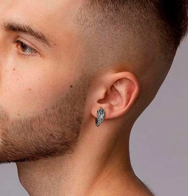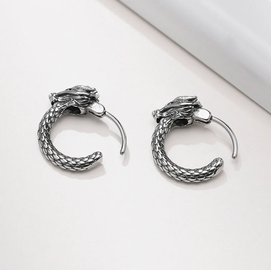 Vintage Stainless Steel Dragon Scale Head Retro Hoop Earrings