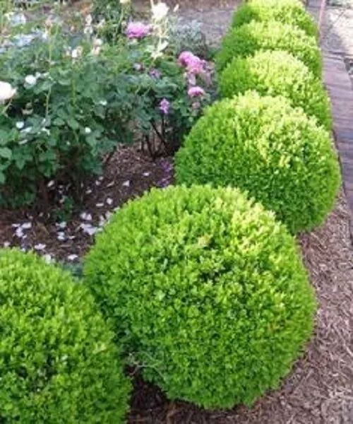 The Dwarf English Boxwood is so versatile that it can be combined with virtually any color palette you choose. Often used to highlight features in gardens like statues or fountains, Dwarf English Boxwoods create striking borders with hardly any effort on your part. They look fabulous lining a long driveway or rimming the border of your garden. A small, rounded shrub that forms tufts of growth resembling a cloud if unsheared. A true dwarf, this species is one of the most popular Boxwoods available. It offers plenty of bang for your buck in a compact shape. Dwarf English Boxwoods are slow-growing and reach up to two feet in height, so you can tuck them in a tight spot with little fear of them becoming overgrown. This allows them to maintain their shape and beauty for long periods of time without maintenance or clipping. This boxwood can grow in a multitude of different conditions- thriving in both sun and shade and requiring minimal water once established