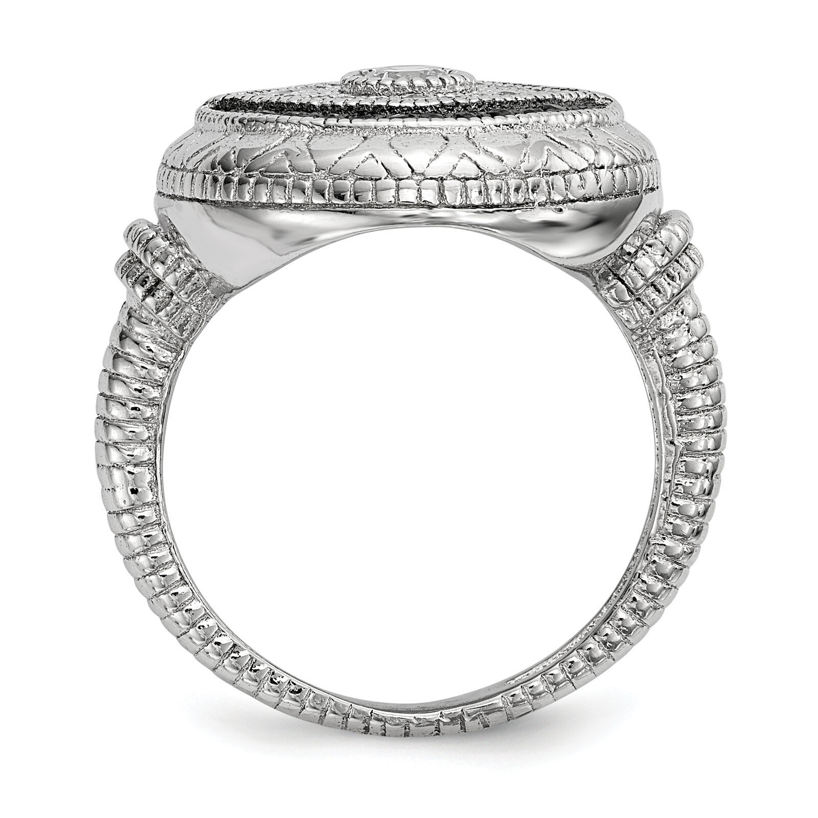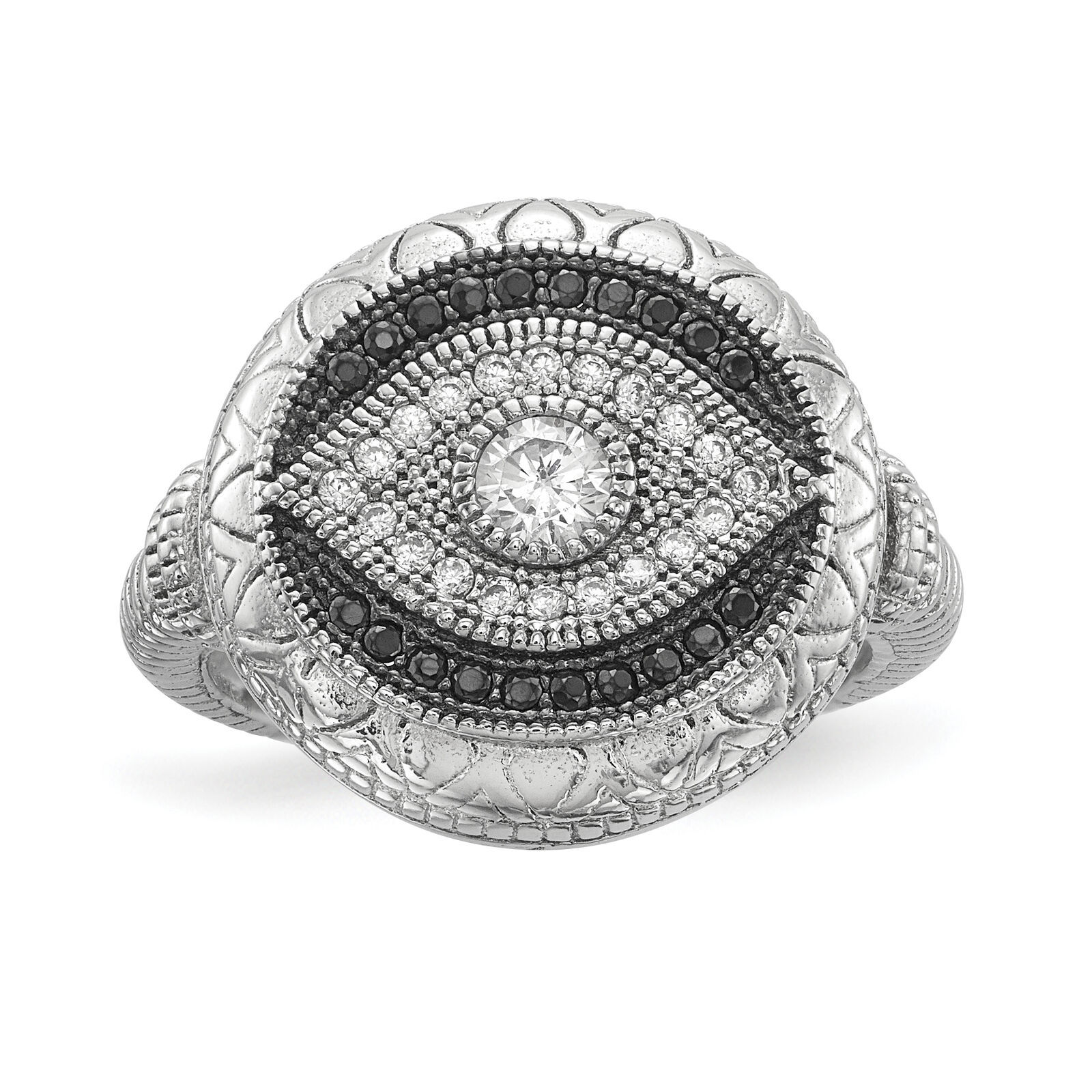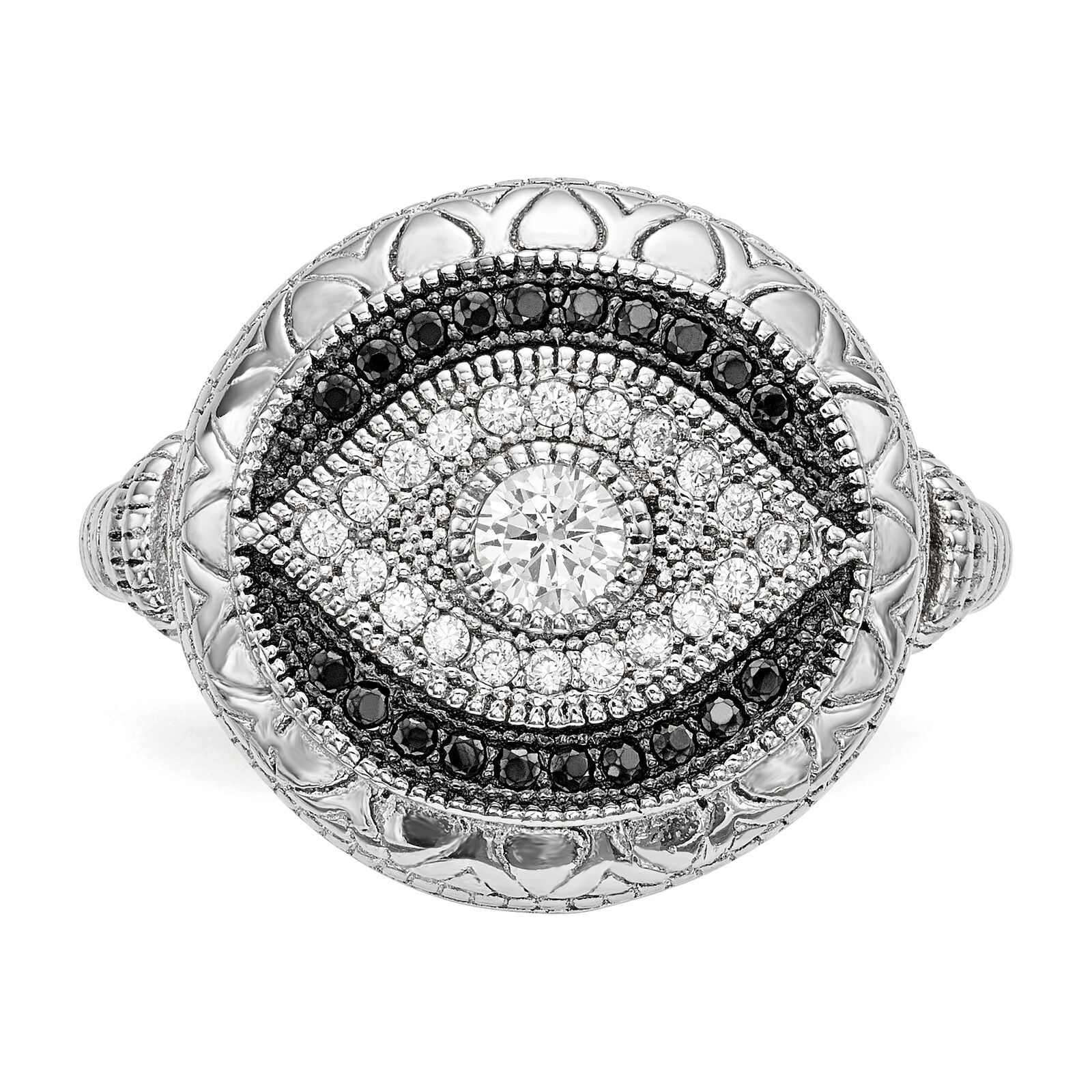Sterling Silver Rhodium-plated Black and White CZ Evil Eye Ring QR6621