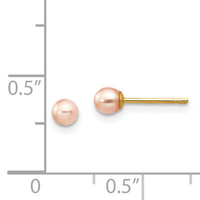 14k 3-4mm Pink Round Freshwater Cultured Pearl Stud Post Earrings