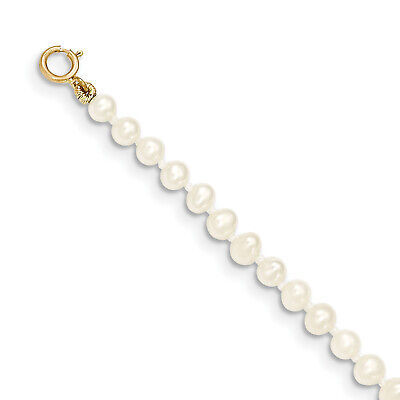 14k 3-4mm White Semi Round Freshwater Cultured Pearl Bracelet XF450