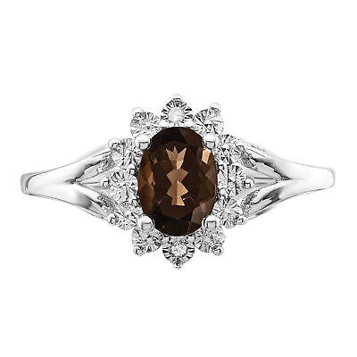 Silver Rhodium Diam. & Smoky Quartz Ring and 49 similar items