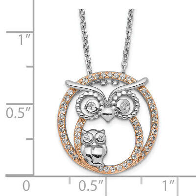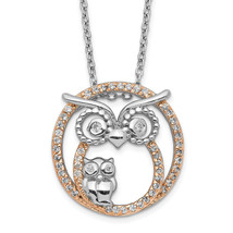 Cheryl M Silver and Rose Gold-plated Brilliant-cut CZ Owls Circle 18.25 Inch Ne