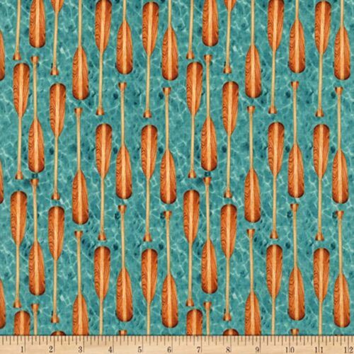 Cotton Lake House Canoe Paddles Canoeing Camping Travel Blue Cotton Fabric Print by the Yard (AMKD-21162-246WATER)