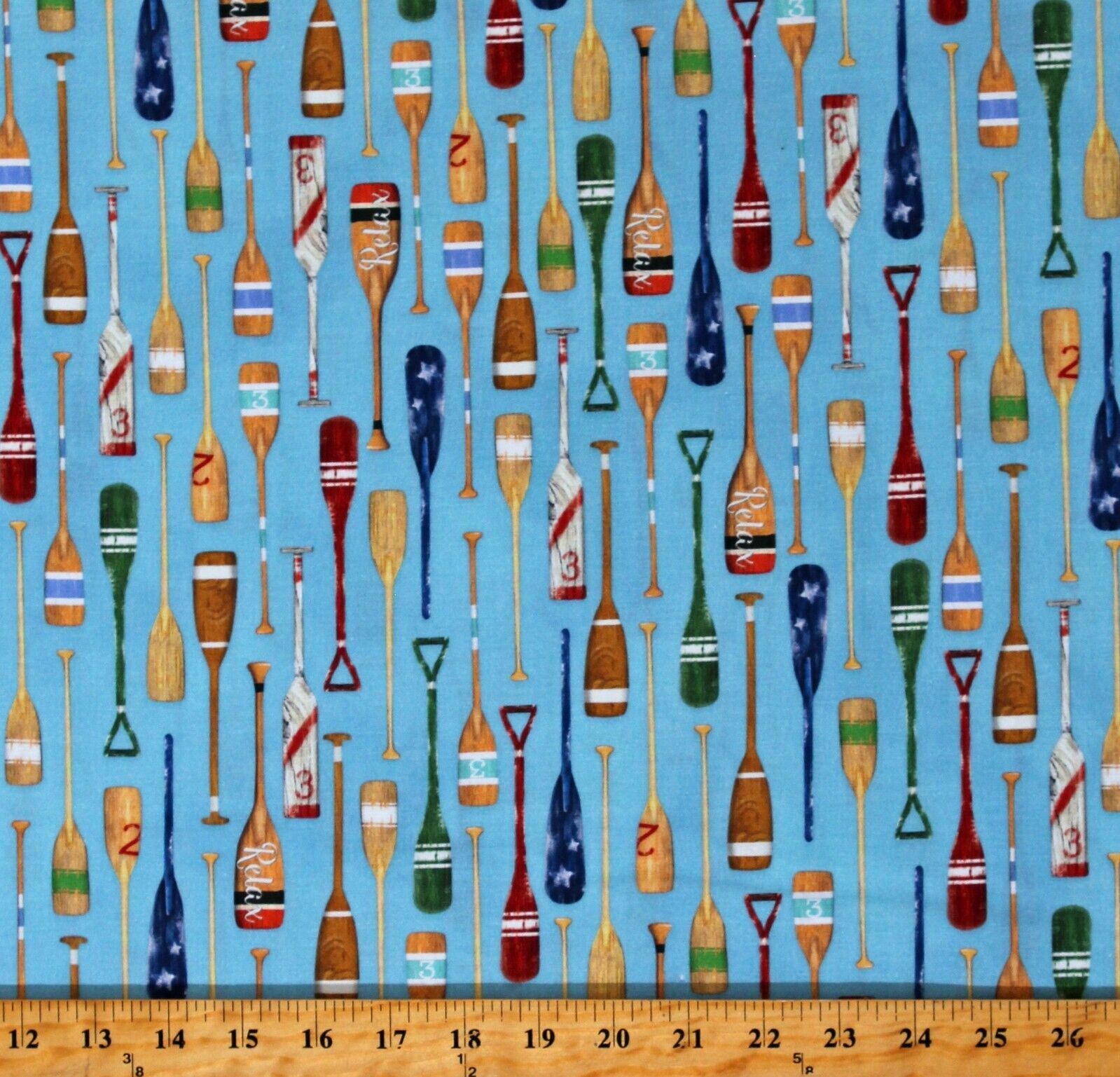 Cotton Lake House Canoe Paddles Canoeing Camping Fabric Print by Yard D409.06