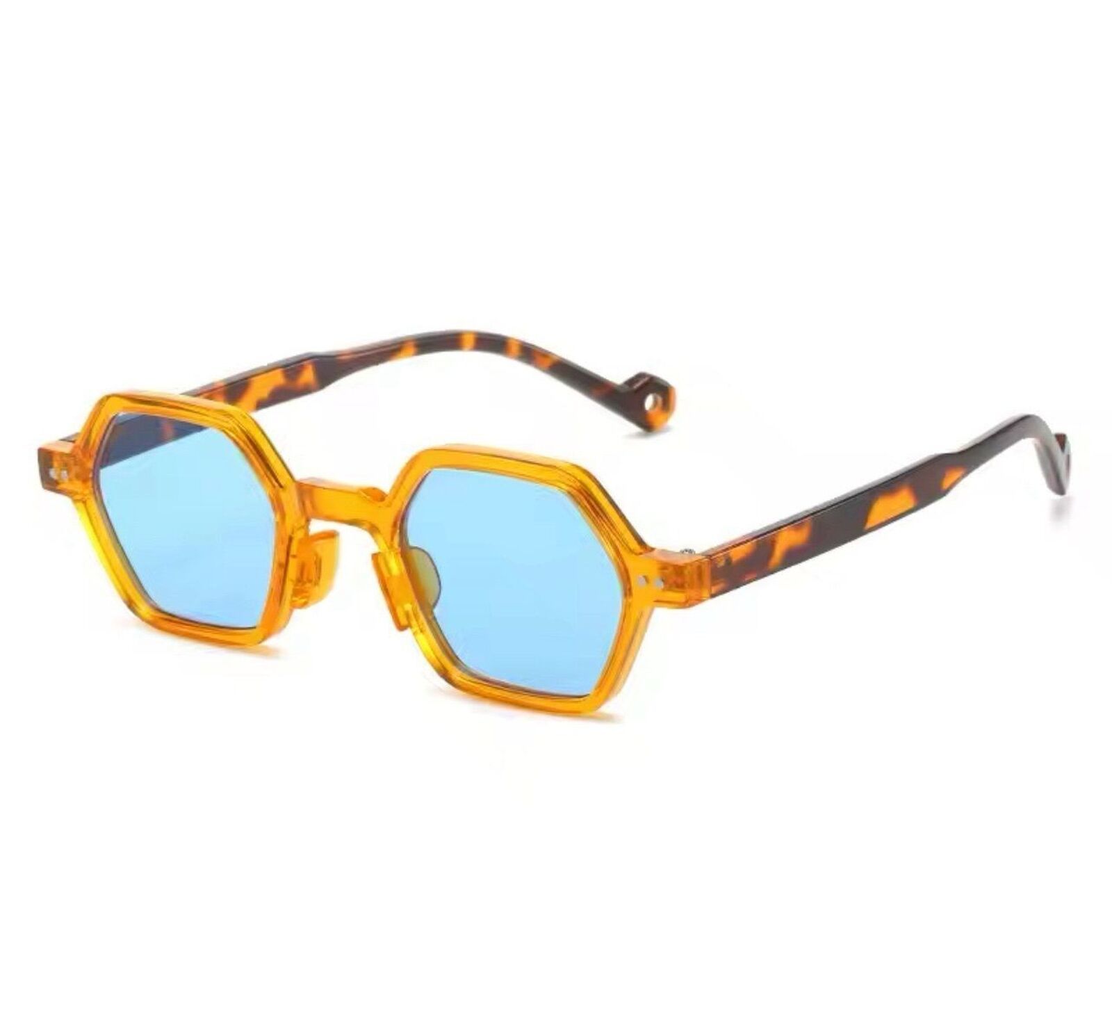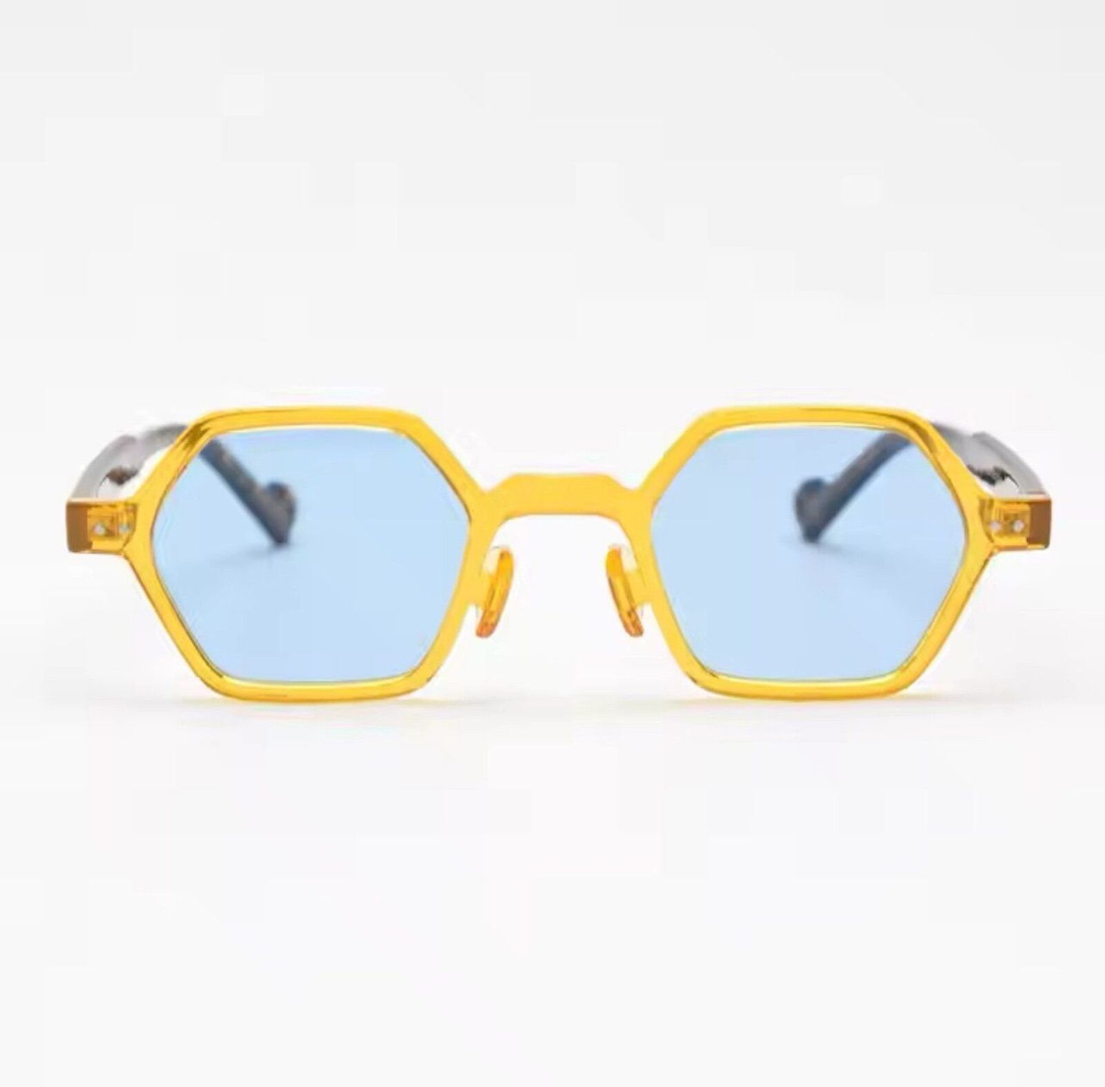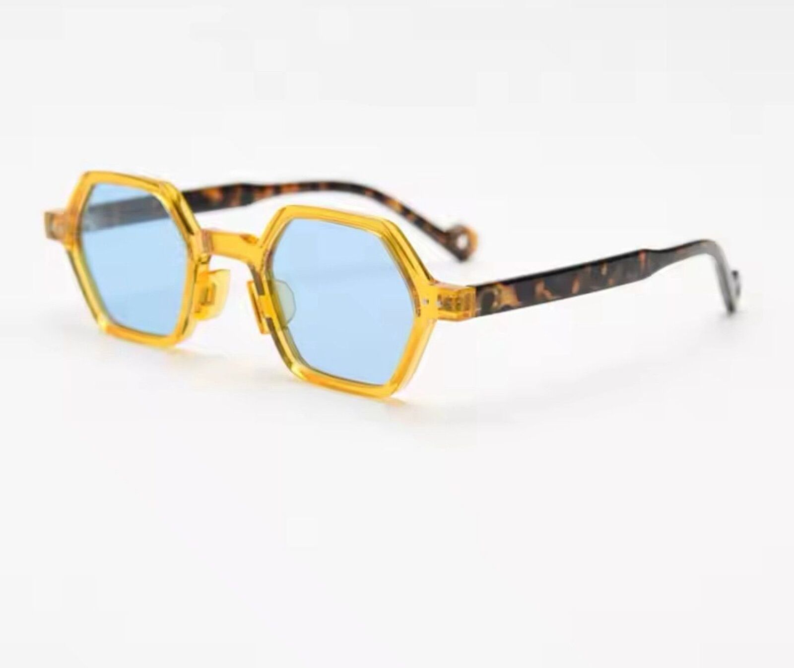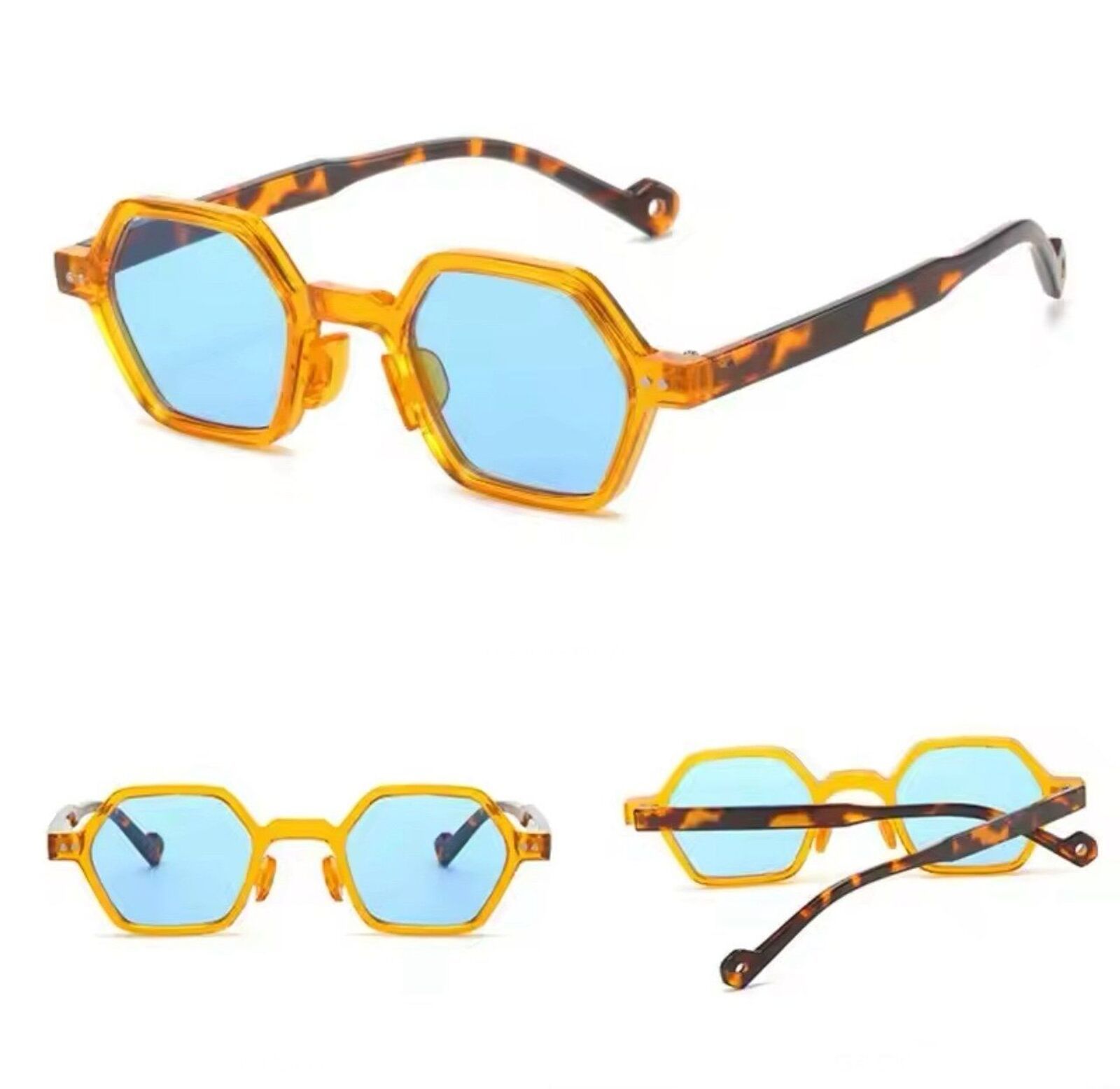 Retro Polygon Square Sunglasses Vintage Y2K Hexagon Shades Clear Ocean Lens Rive