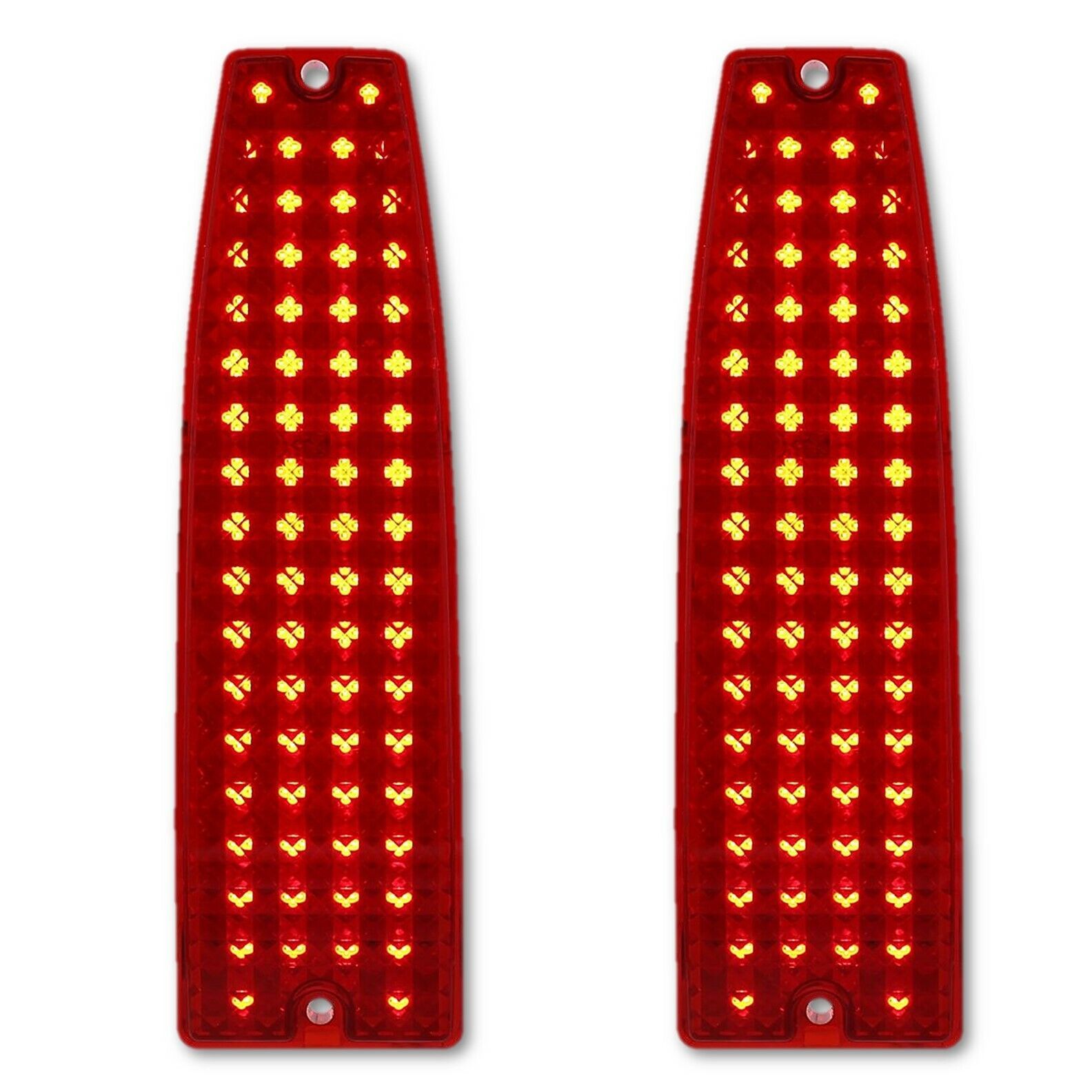 66 67 Chevy II Nova Red LED One Piece Rear Tail Brake Lamp Lenses Flasher Pair