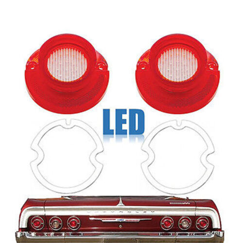 64 Chevy Impala Red Clear LED Rear Back Up Reverse Light Lenses Gaskets Pair