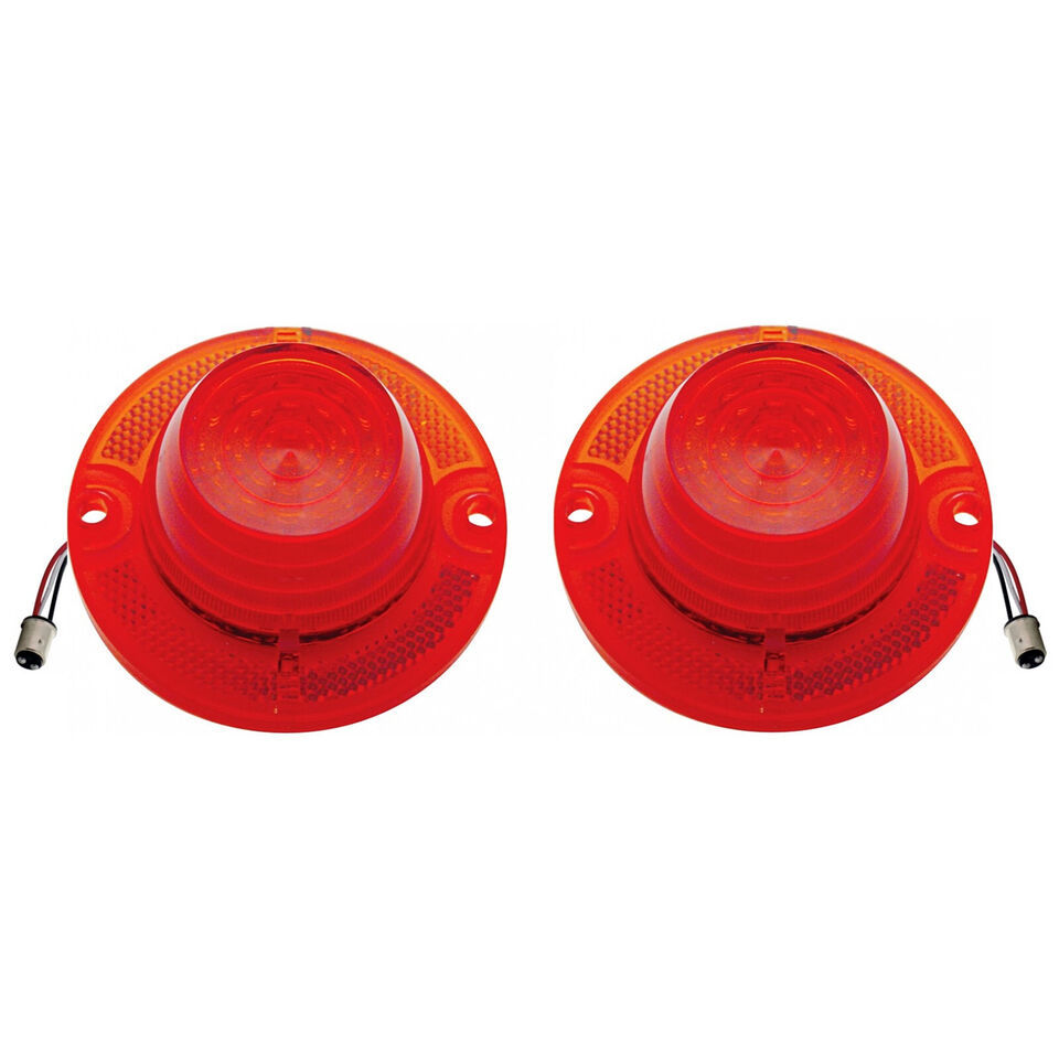 1962 Chevy LED Rear Tail Light Lamp Lens, Chrome Trim Ring Gasket Pair
