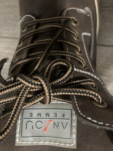 Anjou Femme Women?s Size 10 Brown Winter Lace Up W/Fur Ankle Boots. Tough. New.. Shipped with USPS Ground Advantage.