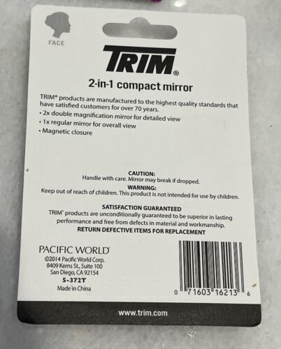 4 Trim 2-In-1 Compact Mirror Face Beauty Care Professional Quality 2x / 1x Magnification