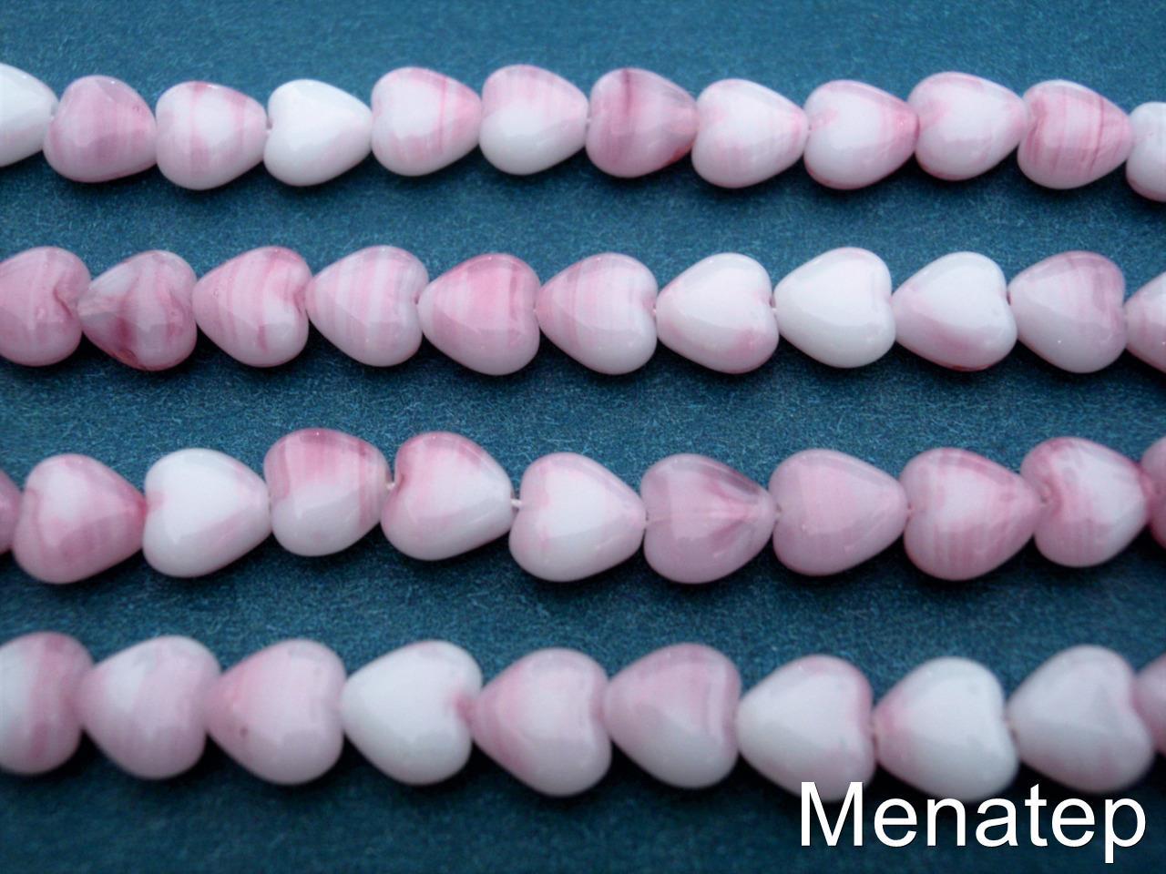 50 6x6mm Czech Glass Heart Beads: Pink Quartz