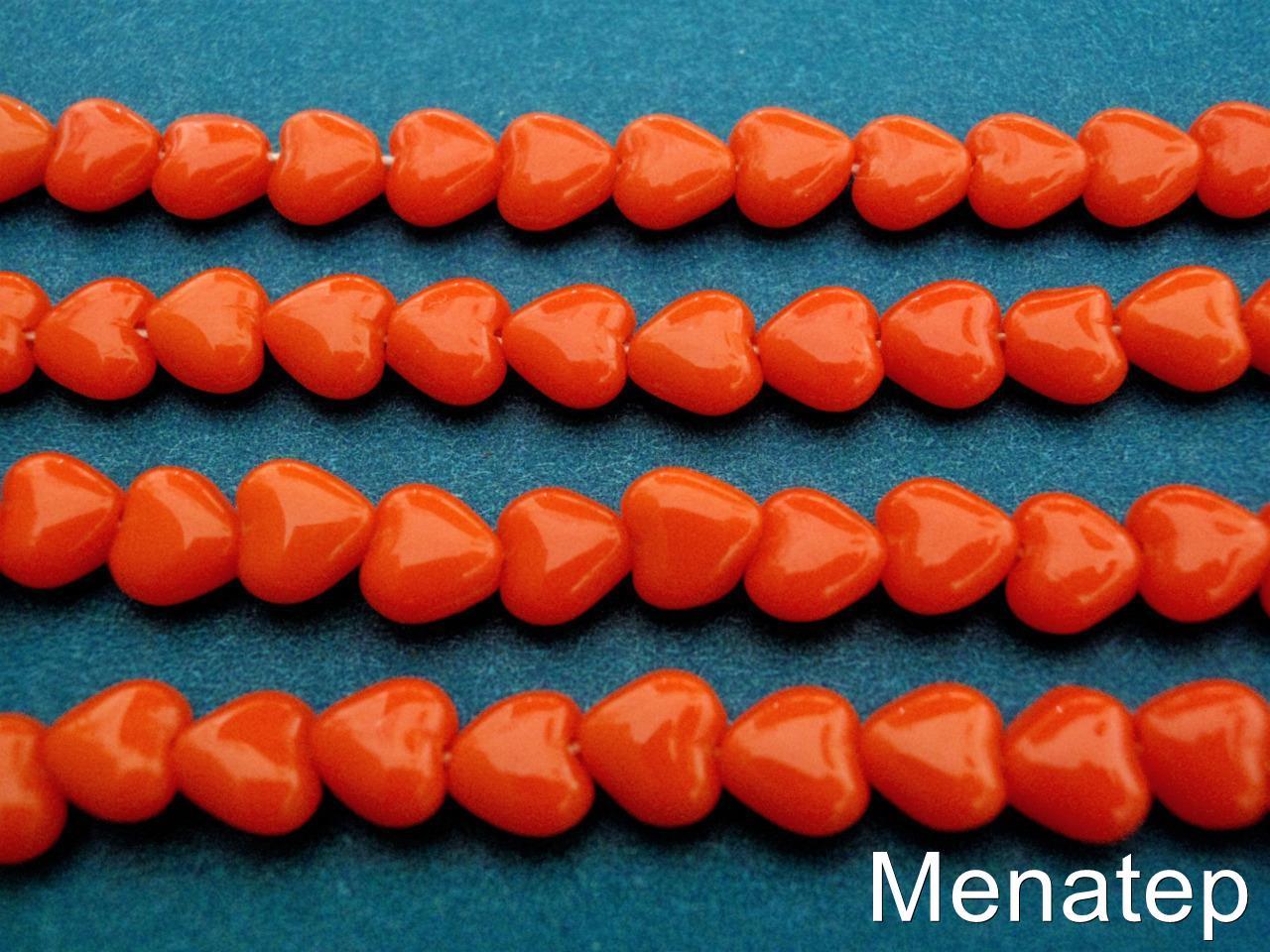50 6x6mm Czech Glass Heart Beads: Opaque Orange