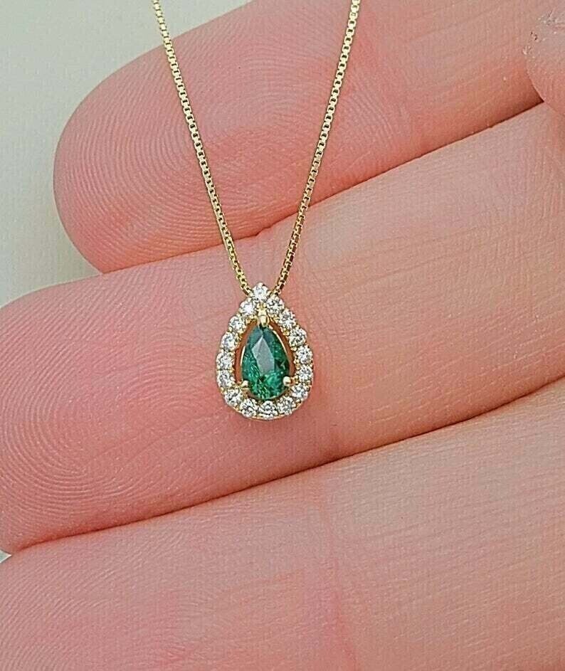 1.20Ct Pear Cut Lab Created Emerald Halo and 49 similar items