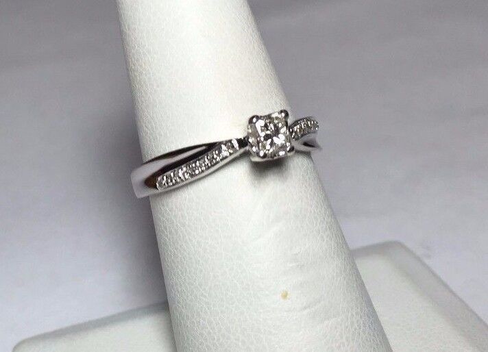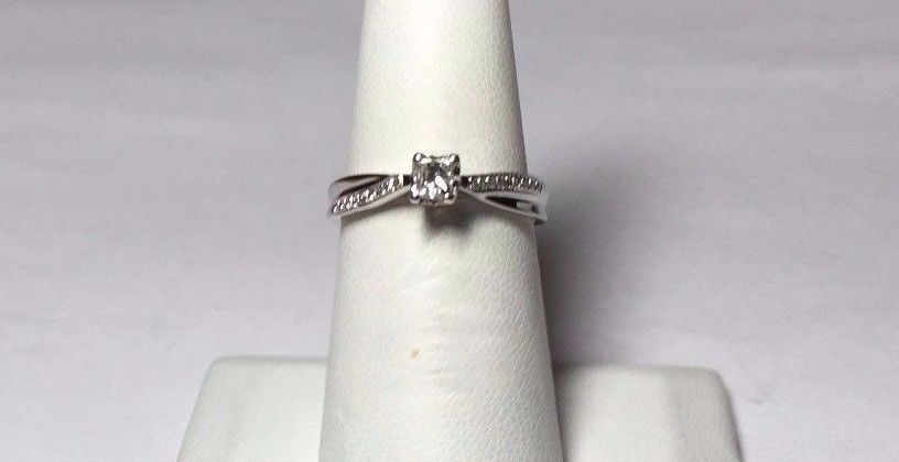 Silver Silvadium Genuine 1/4 CTW Princess Cut & Round Diamond Engagement Ring