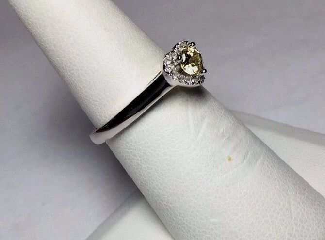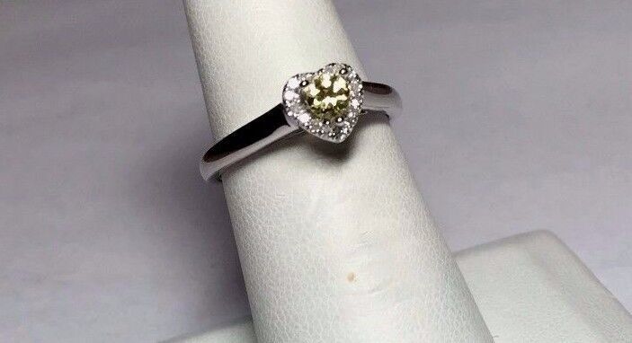 Silver Silvadium Genuine 1/3 CTW Diamond/Yellow Sapphire Engagement Heart Ring