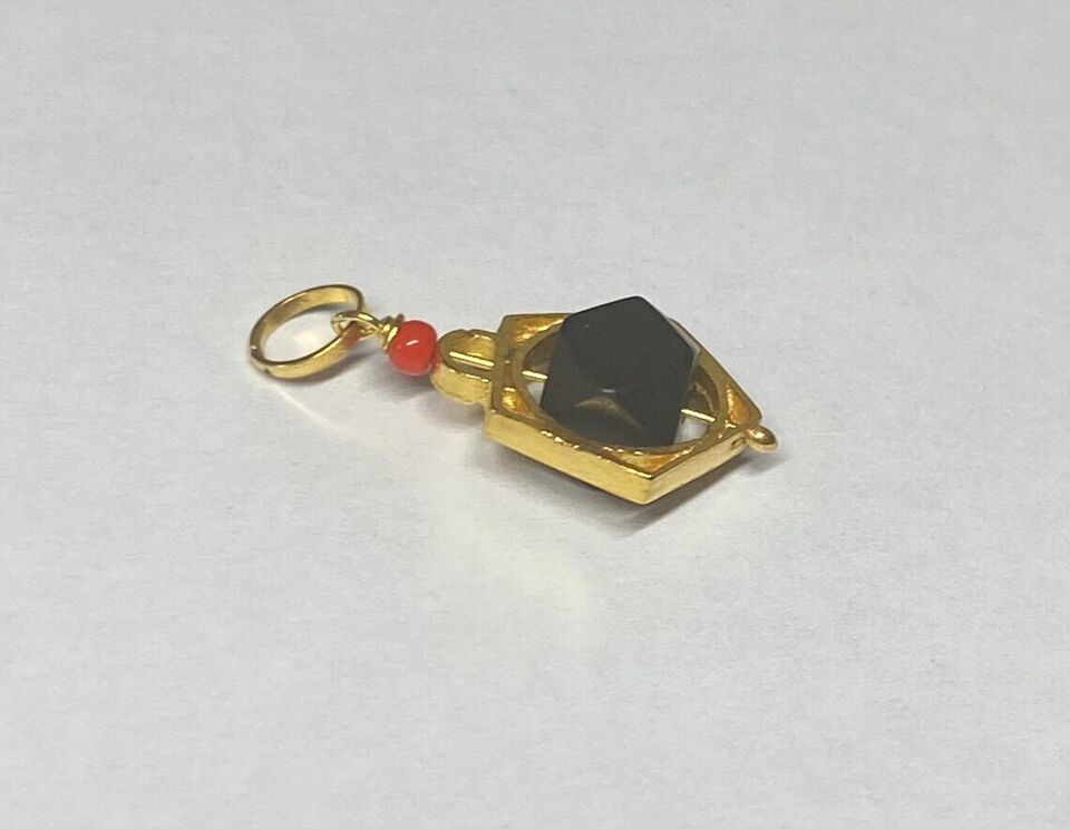 Vintage 1960's NOS 14K Yellow Gold Azabache Jet 6mm Bead Pentagon Shape Spinner Pendant