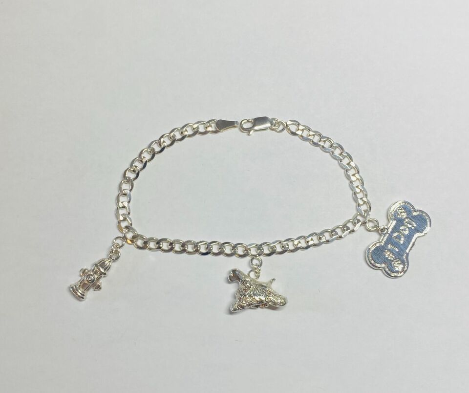Sterling Silver Cocker Spaniel Dog Lover Curb Link 8" Charm Bracelet