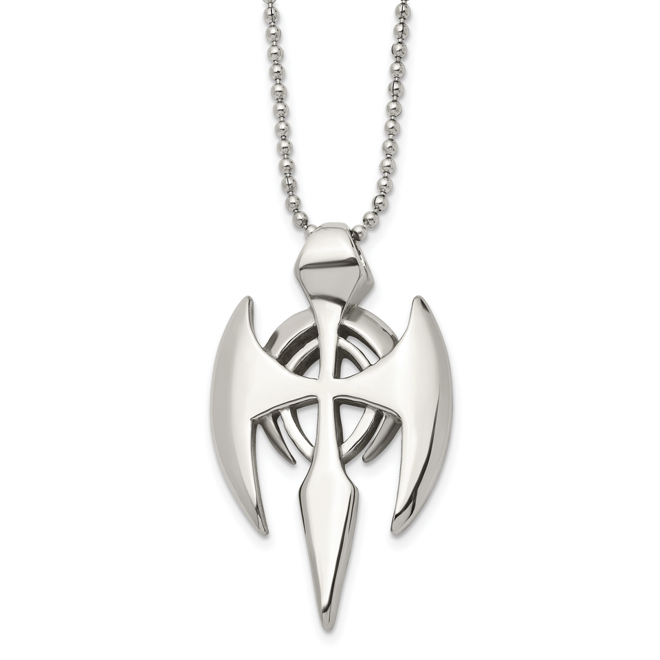 Chisel Stainless Steel Polished Gothic Cross Pendant on a 24 inch Ball Chain Nec