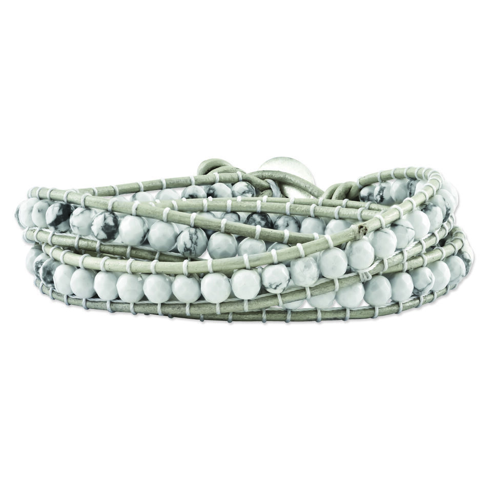 White Howlite Beaded and Leather Multi-wrap Bracelet