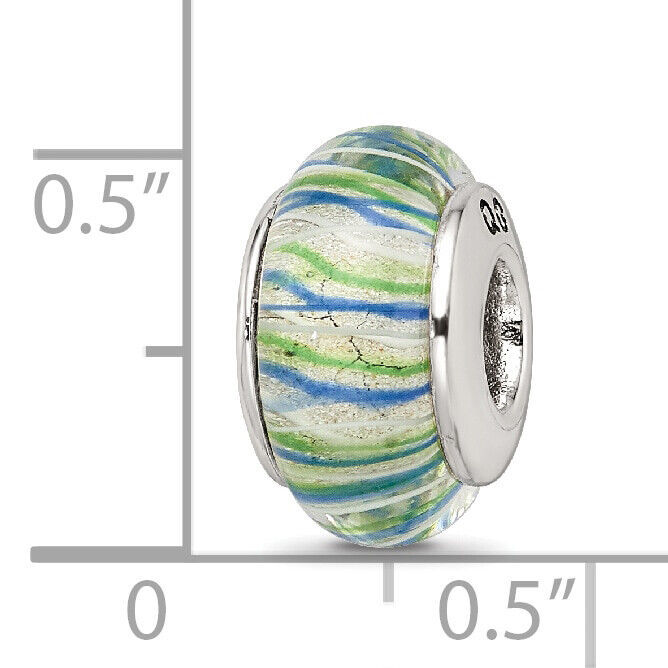 Silver Reflections Blue/Green Hand-blown Glass Bead QRS688