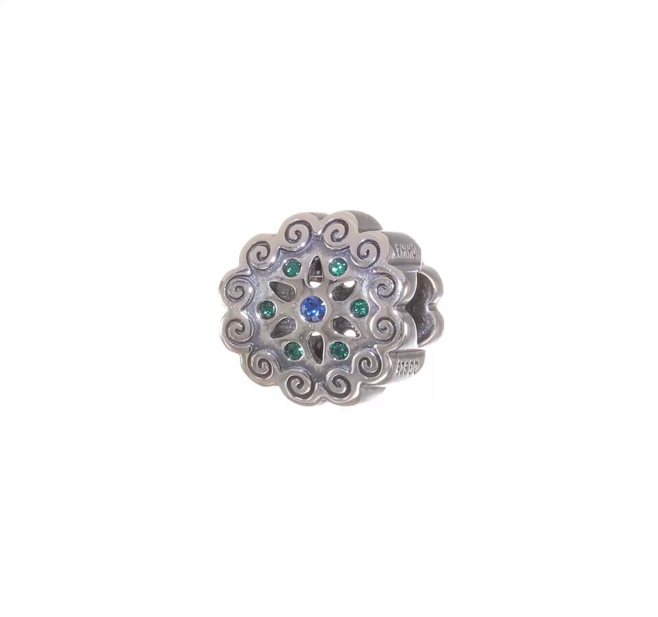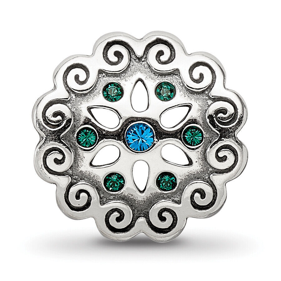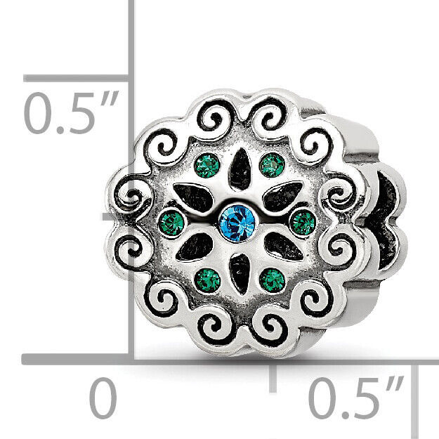 Sterling Silver Reflections Blue/Green Crystals Flower Bead QRS3353