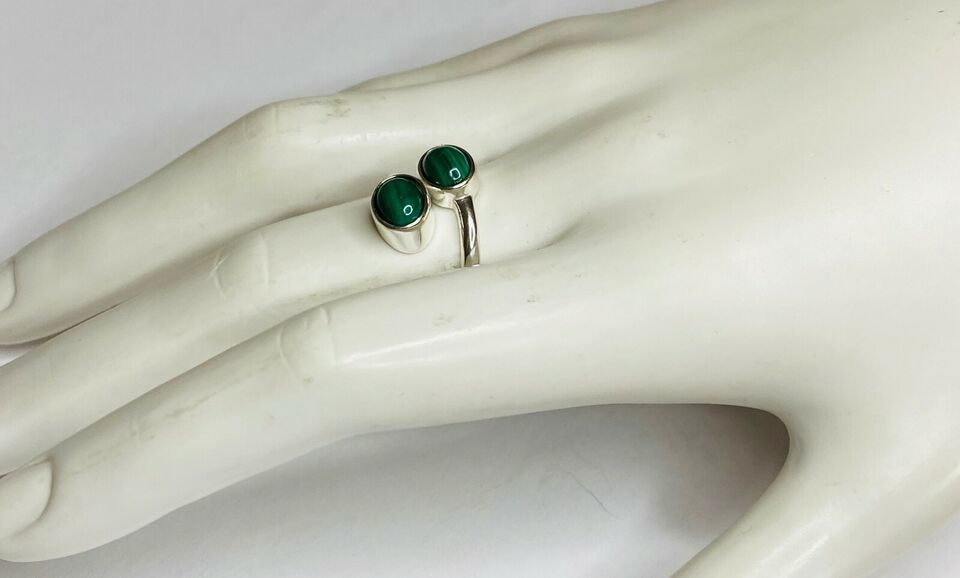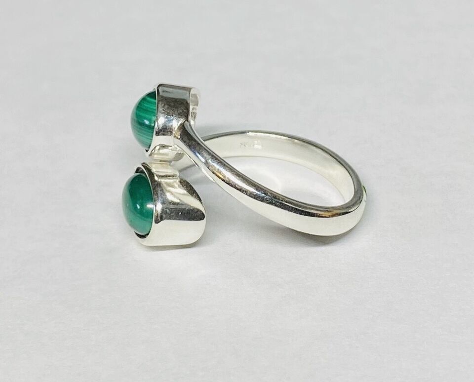 Sterling Silver Genuine Malachite 8mm x 6mm Cabochon Bypass Ladies Ring