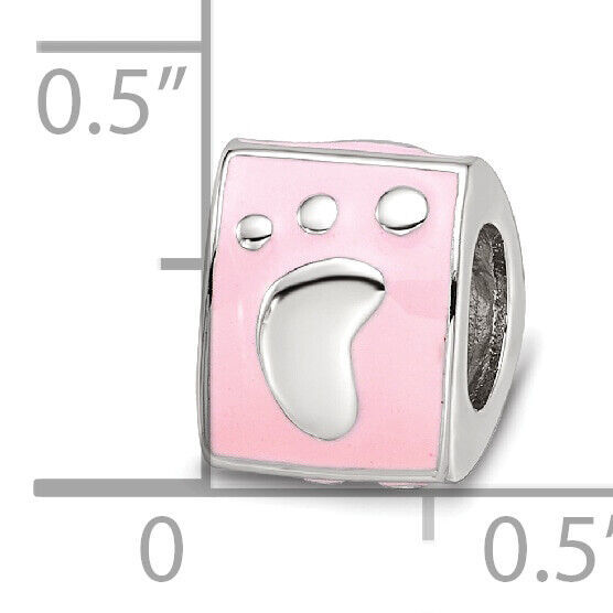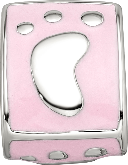 SS Reflections Rh-plated Pink Enamel 3-sided Baby Footprint Bead QRS3479