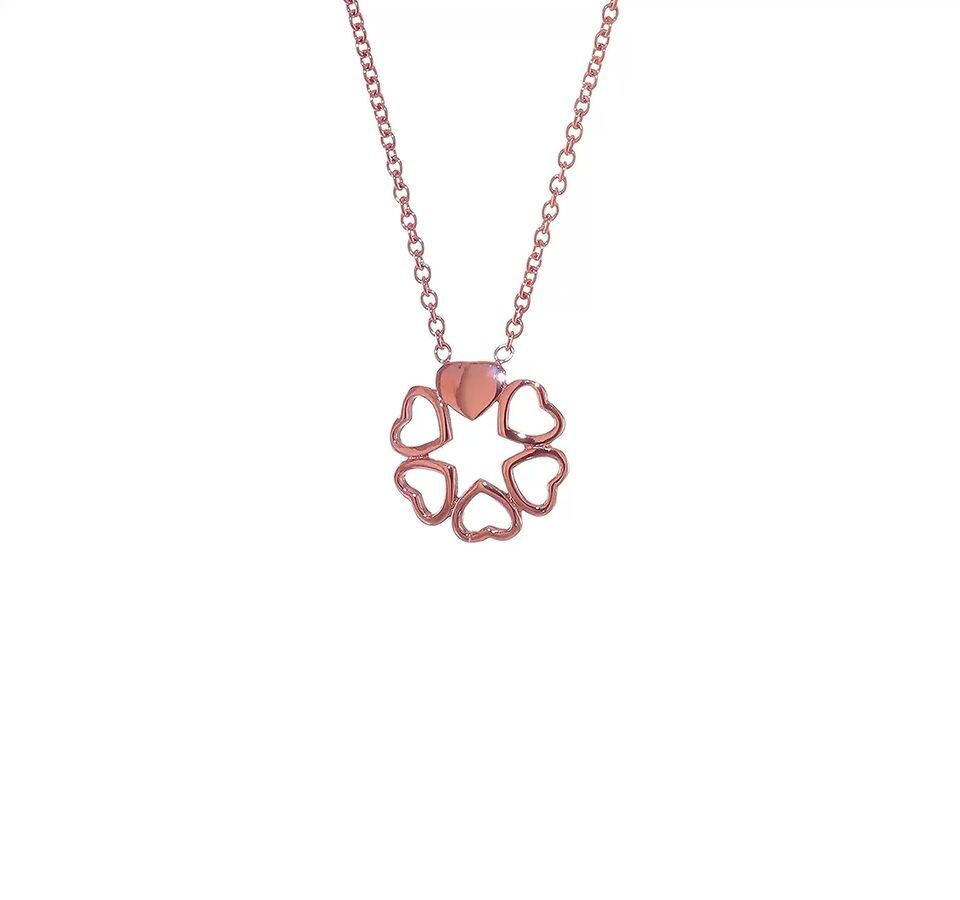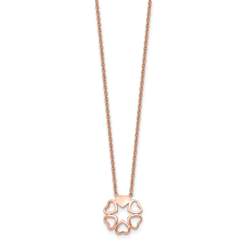 Stainless Steel Polished Rose IP-plated Circle of Hearts 17.25in Necklace SRN155